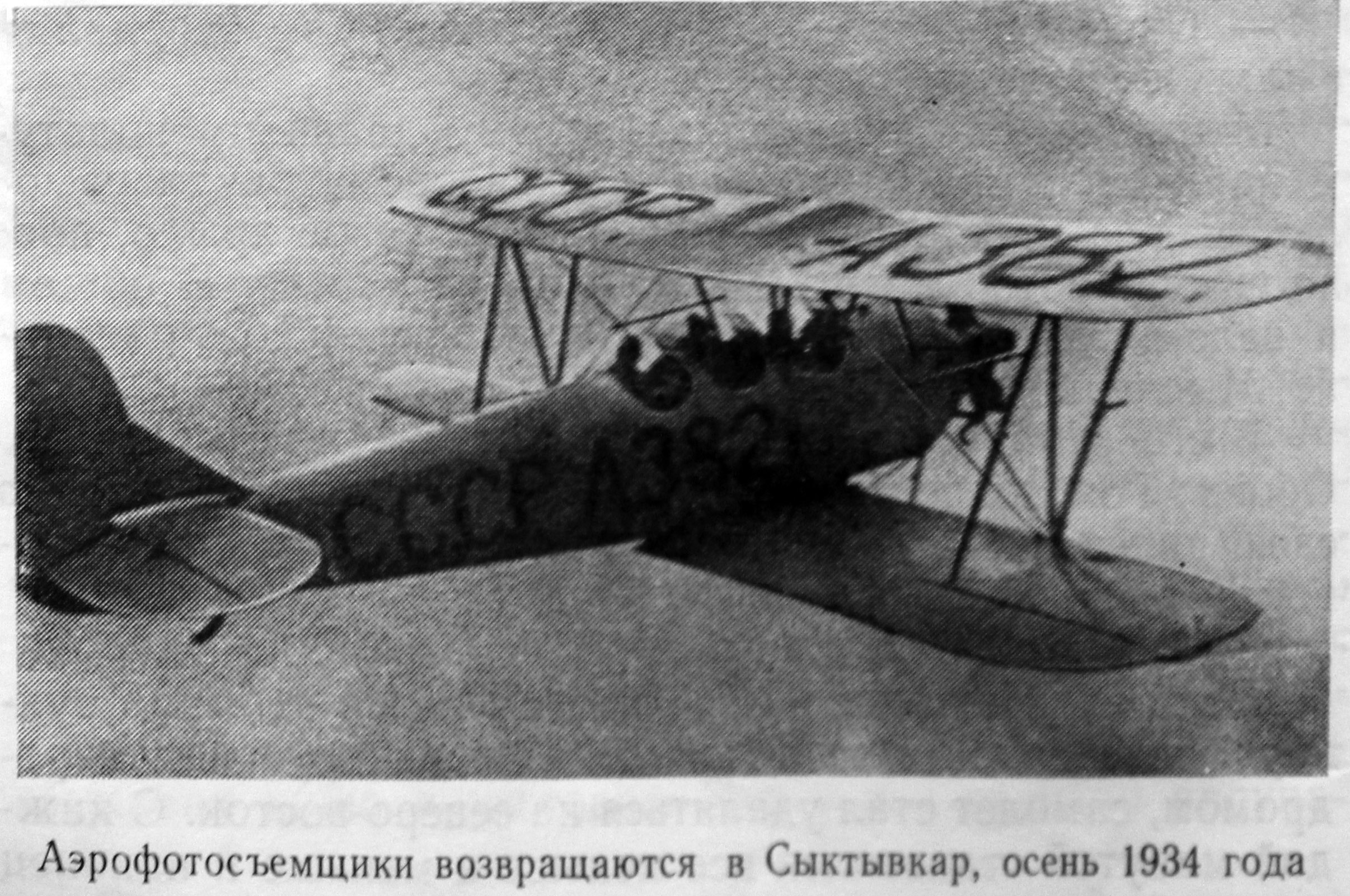 На фотографии действительно был мой самолет с опознавательным знаком СССР А-382, сфотографированный с другого самолета в полете. И хотя это было очень давно, но снимок живо, как наяву, воскресил в памяти моей незабываемые полеты в небе Коми, как возили почту пассажиров, и фотографировали лесные массивы. И куда только не летали мы на своих маленьких, неприхотливых трехместных У-2, как правило, без всякой связи и метеорологического обеспечения. Потом в других местах при¬шлось водить многомоторные пассажирские воздушные корабли, а в войну дальние бомбардировщики, но все же полеты в небе Коми остались на всю жизнь хорошими летными университетами, где я познал чарующую прелесть высоты, людскую доброту и постоянную готовность пилота ко всяким неожиданностям.
