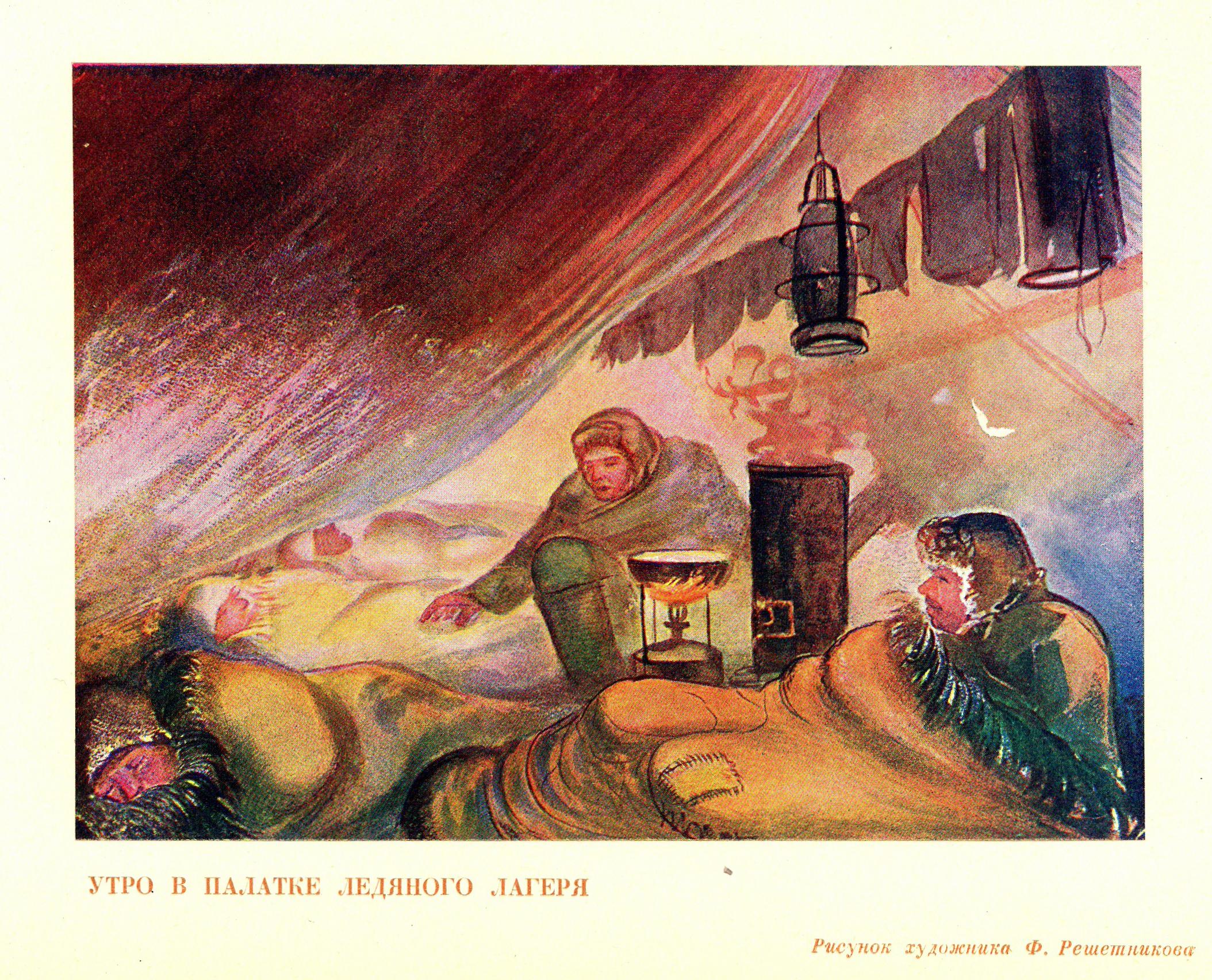 Федя Решетников. Бывший беспризорный. Молодой художник и старый комсомолец. И на судне и на льду он успевал не только работать, как и все, но и рисовать. Остроумный, компанейский, живой парень. Кавалер двух орденов. Мы передали его в партию.
