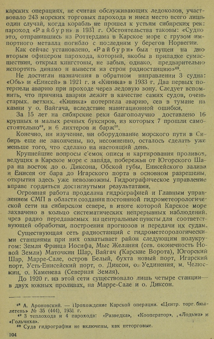 {48} А. Ароновский. — Прохождение Карской операции. «Центр. торг. бюллетень» № 35 (444), 1931 г.