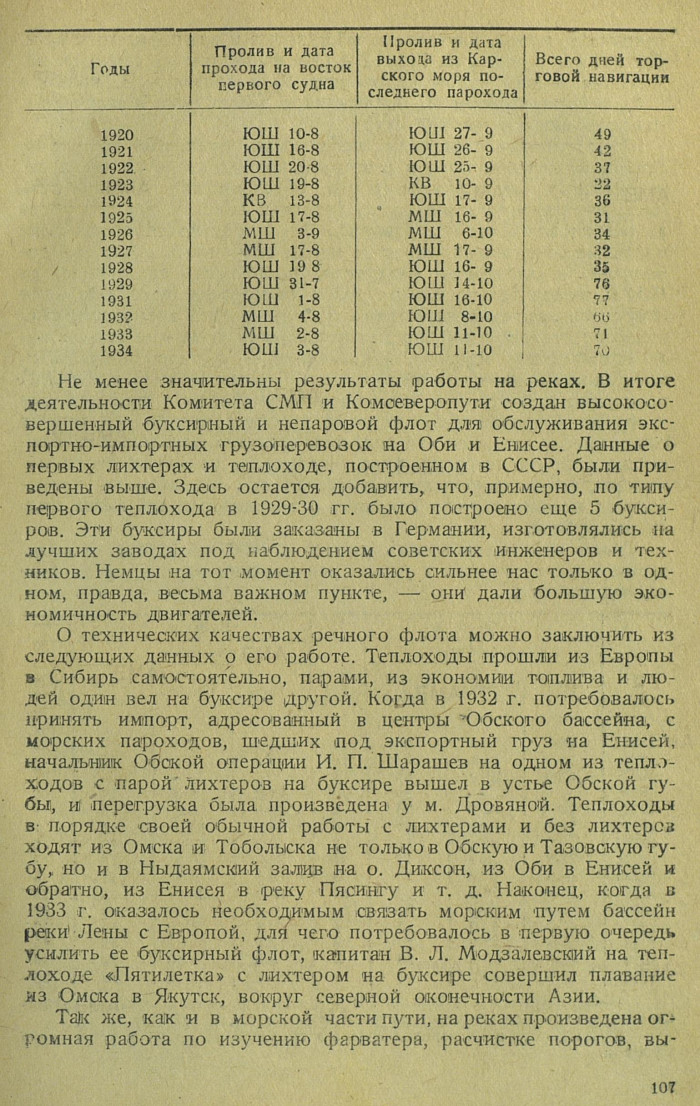 Сроки пребывания в сибирских водах торговых судов Карской экспедиции за исследуемый период были следующими (см. табл. на стр. 107).