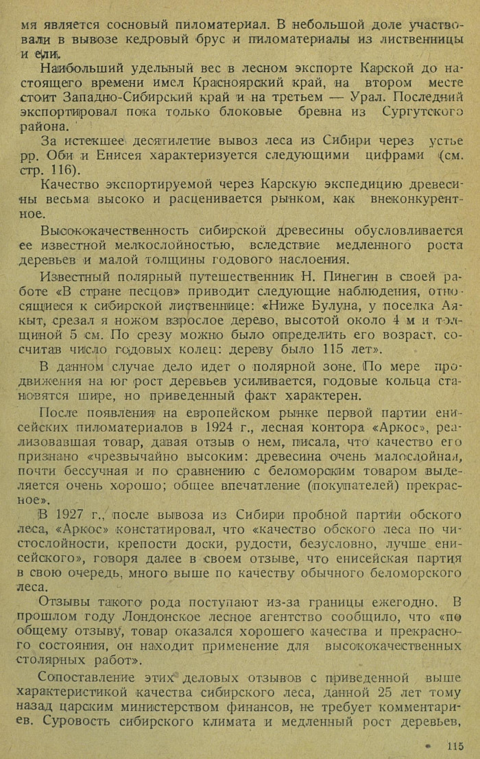 Сопоставление этих деловых отзывов с приведенной выше характеристикой качества сибирского леса, данной 25 лет тому назад царским министерством финансов, не требует комментариев. Суровость сибирского климата и медленный рост деревьев,