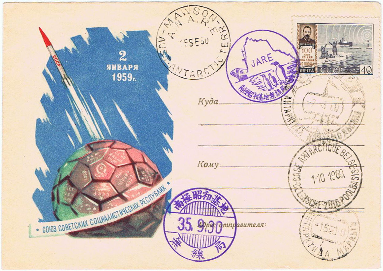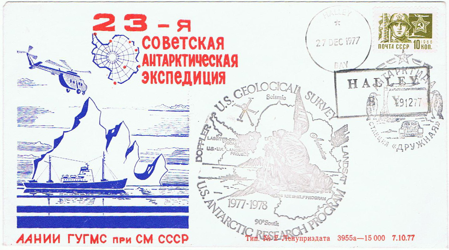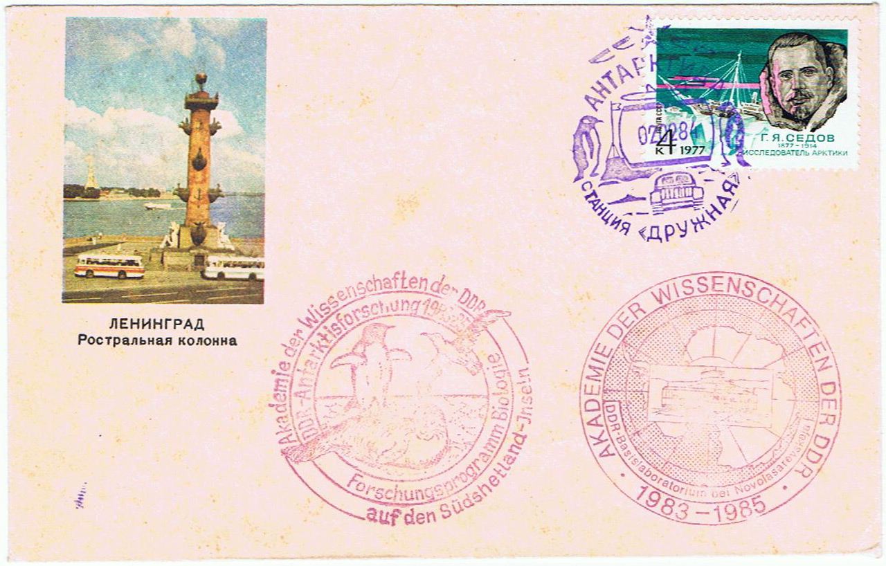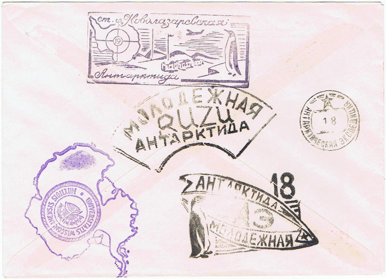 В заключение темы "Антарктические письма" хочу отметить, что на наших антарктических станциях работали и иностранные учёные из Польшы, Германии, США. У них были свои штампы, которые они ставили на наших конвертах или дарили уже проштампованные. И даже со штампами Японии и Аргентины.