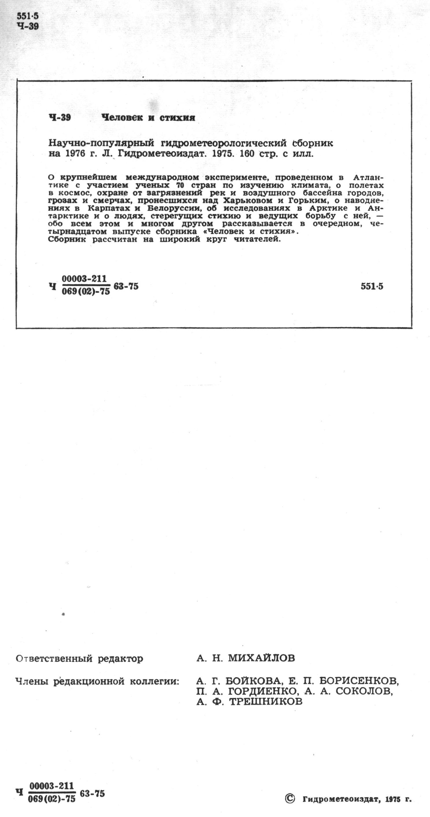 Научно-популярный гидрометеорологический сборник на 1976 г.