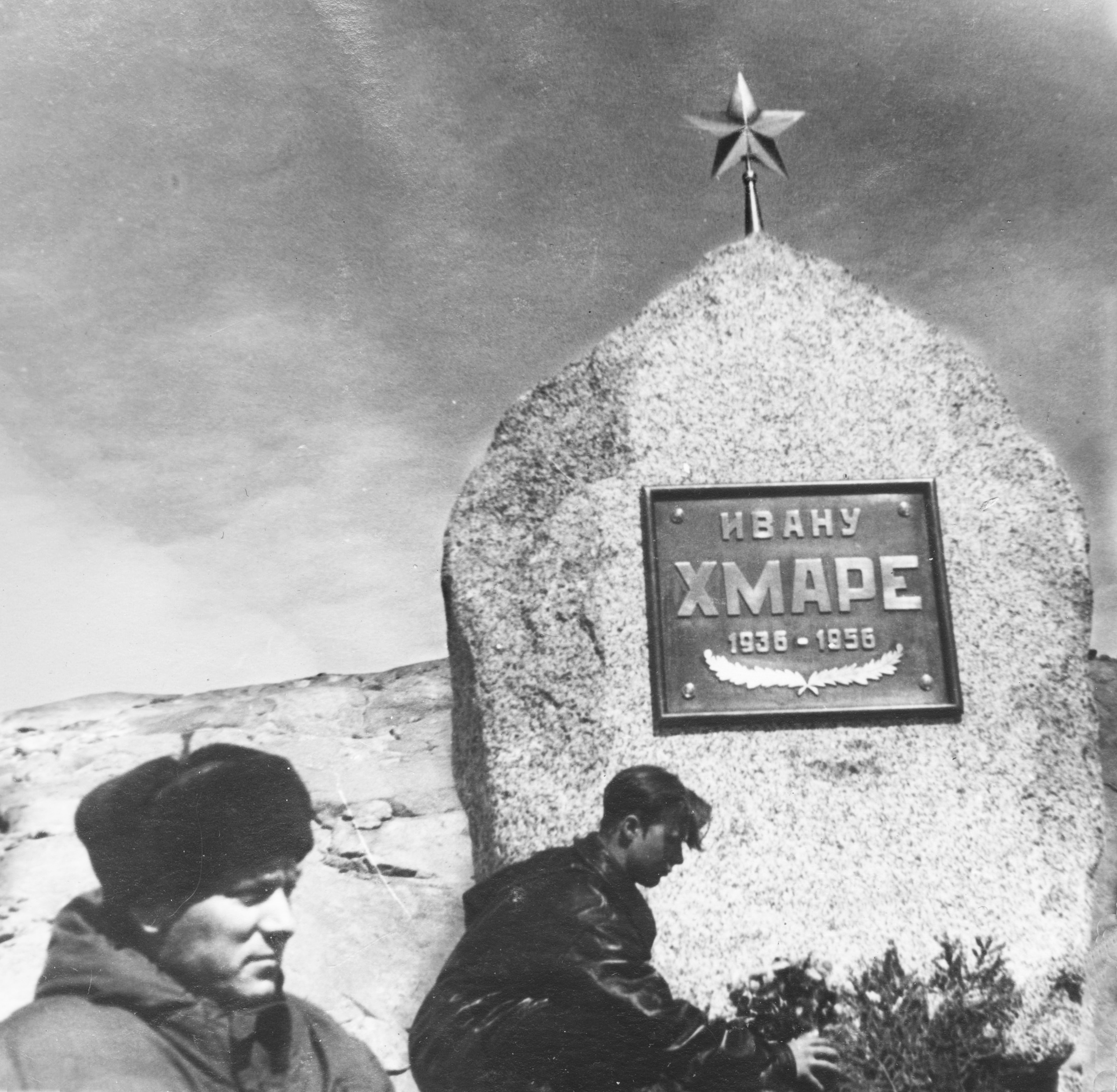 14 февраля 1957 года.Утром шторм стал стихать. Нас, авиаторов, катером доставили на мыс «Хмара». Мысом «Хмара» названо место, где установлен памятник трактористу Ивану Хмаре, утонувшему с трактором в море против этого мыса. От этого мыса мы около двух километров пешком шли до самолета.