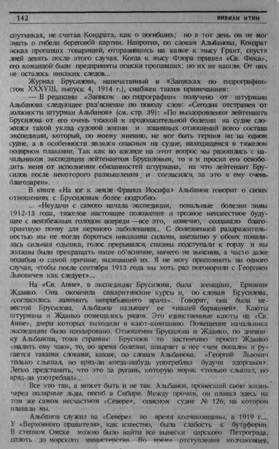 В книге «На юг к земле Франца Иосифа» Альбанов говорит о своих отношениях с Брусиловым более подробно.