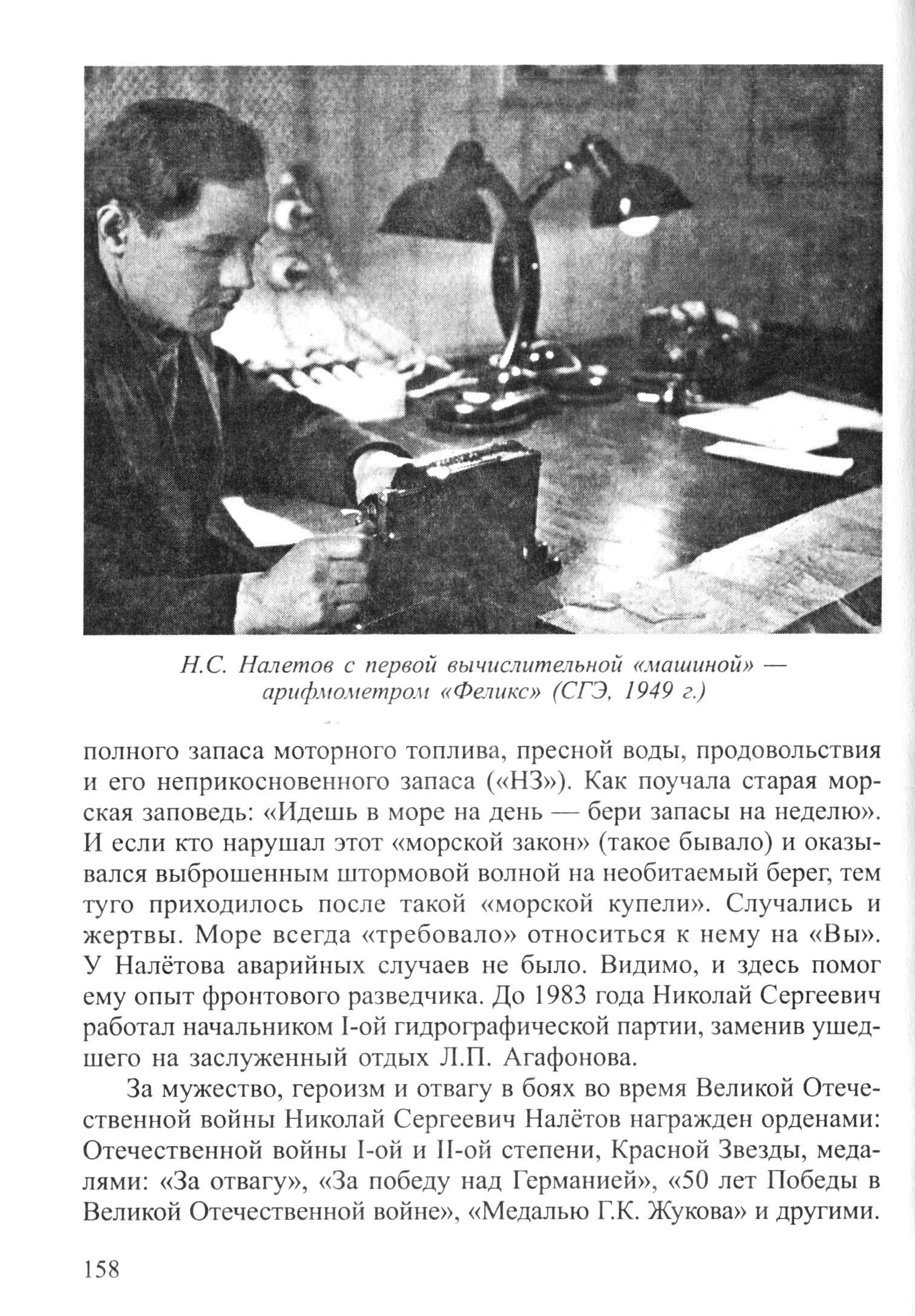 У Налётова аварийных случаев не было. Видимо, и здесь помог ему опыт фронтового разведчика. До 1983 года Николай Сергеевич работал начальником I-ой гидрографической партии, заменив ушедшего на заслуженный отдых Л.П. Агафонова.