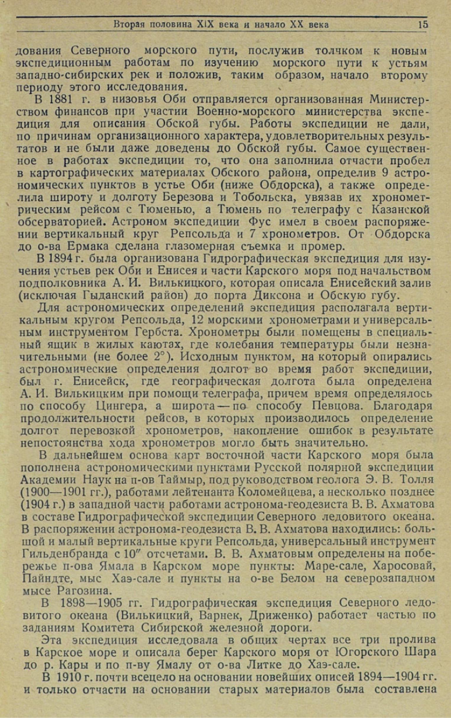 В 1894 г. была организована Гидрографическая экспедиция для изучения устьев рек Оби и Енисея и части Карского моря под начальством подполковника А. И. Вилькицкого, которая описала Енисейский залив (исключая Гыданский район) до порта Диксона и Обскую губу.