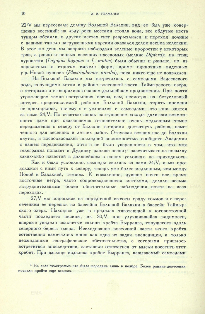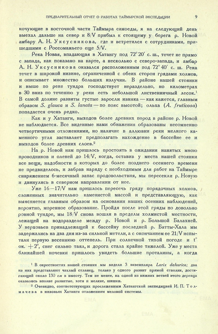 так как организовать дальнейшее передвижение на север с Россомажьего или одного из промежуточных между ним и Хатангой станков будет легче, нежели с самой Хатанги. Ввиду этого, мы остались на некоторое время на Россомажьем, а 25/IV я выехал налегке на Хатангу, с тем, чтобы дожидаться там прибытия якутской партии. Заботы о передвижении с Россомажьего нашего каравана, буде такое передвижение понадобится, любезно взял на себя находившийся на Россомажьем председатель Хатангского туземного волисполкома М. Г. Аксенов.