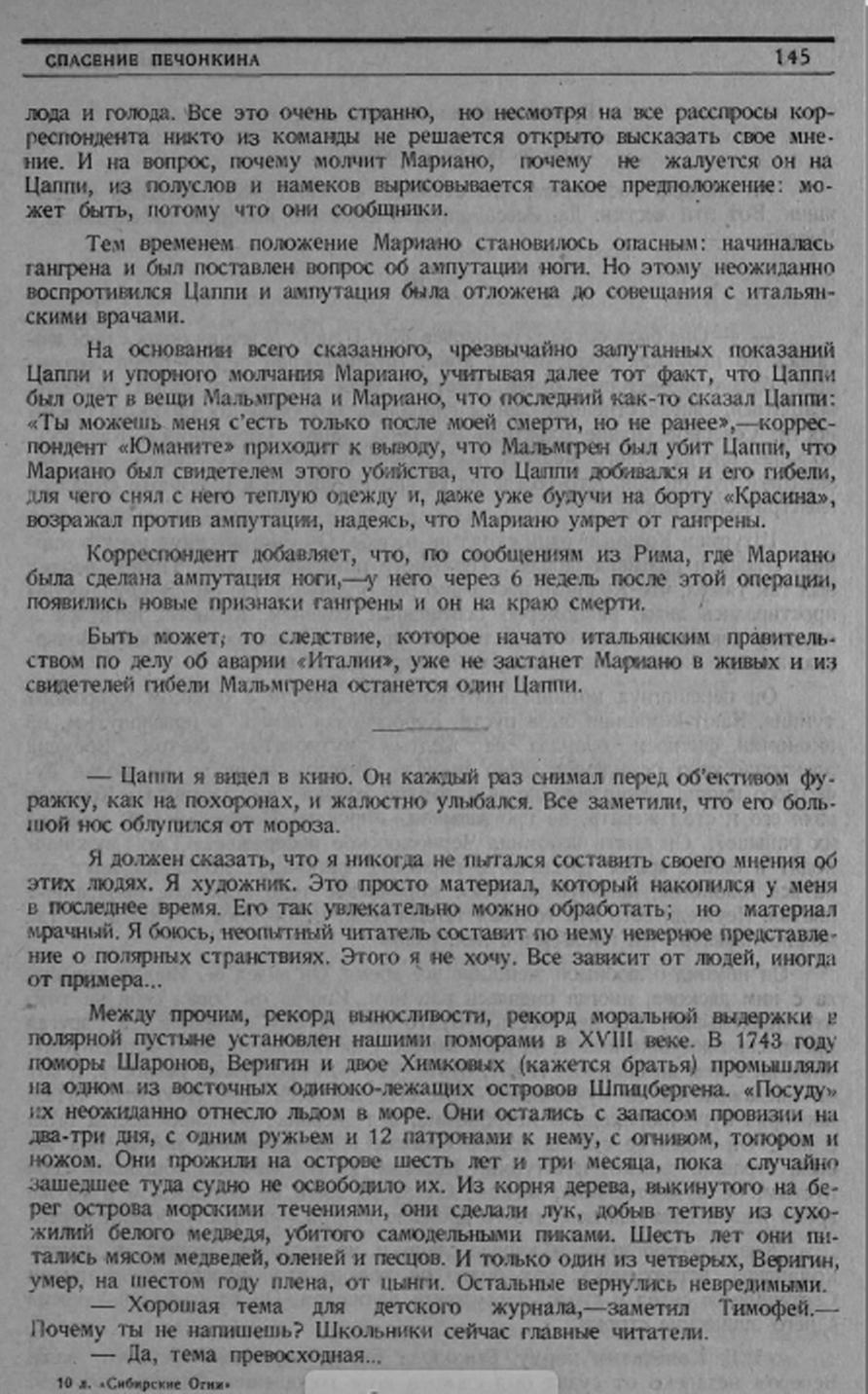 Быть может, то следствие, которое начато итальянским правительством по делу об аварии «Италии», уже не застанет Мариано в живых и из свидетелей гибели Мальмгрена останется один Цаппи.