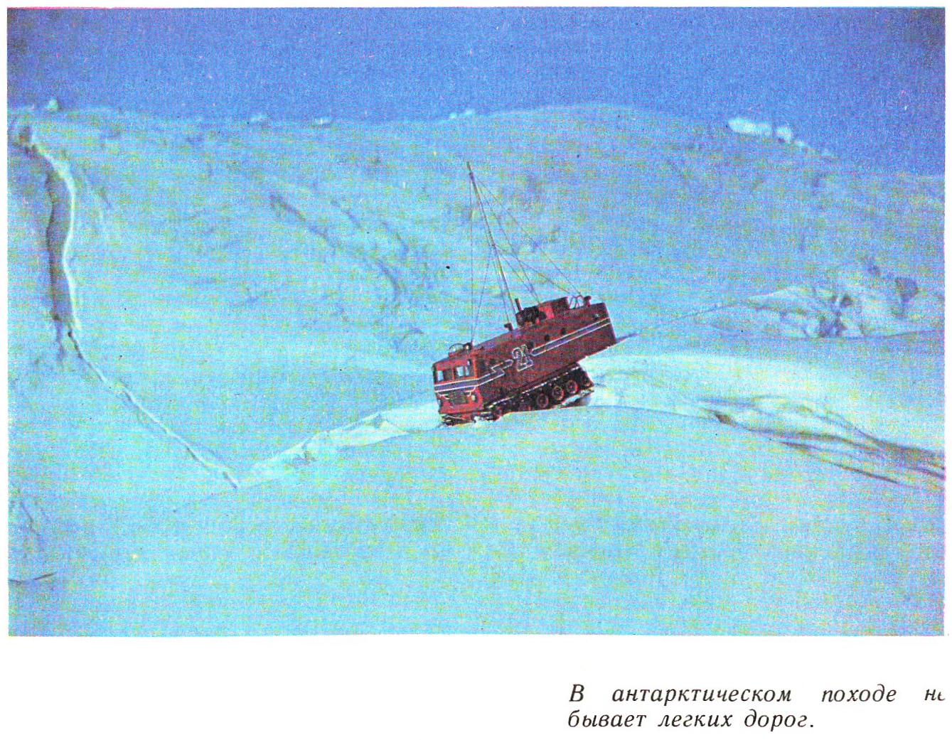 Надо было снова одеваться и идти на мороз убирать метеостанцию. Вдруг в полную мощь пятисотсильного мотора взревела «Харьковчанка» — головная машина начальника похода Она двинулась вперед, сделала круг и повернулась в сторону станции Восток, до которой нам предстояло преодолеть полтысячи километров сыпучего снега. Но тепло и уют маленькой внутриконтинентальной станции дали новые силы большому походу.
