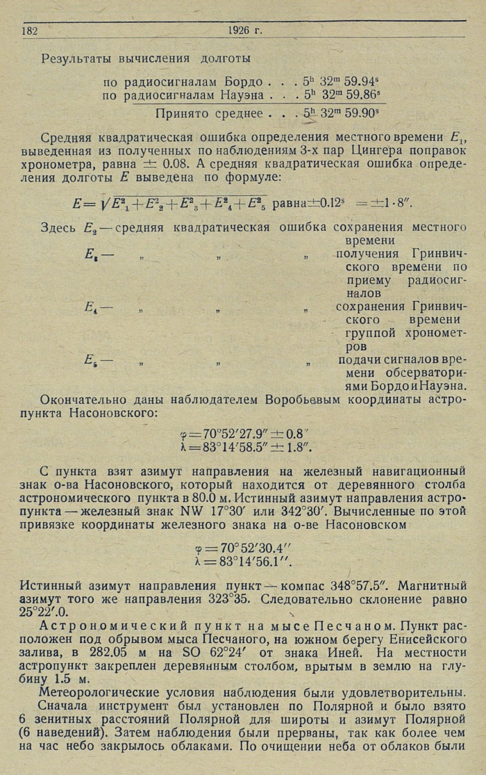РезультатыАстрономические наблюденияКак уже было отмечено выше, работавший в составе Отдельного Обь-Енисейского гидрографического отряда и экспедиций Убеко-Сибири в качестве астронома в течение 6 лет проф.
