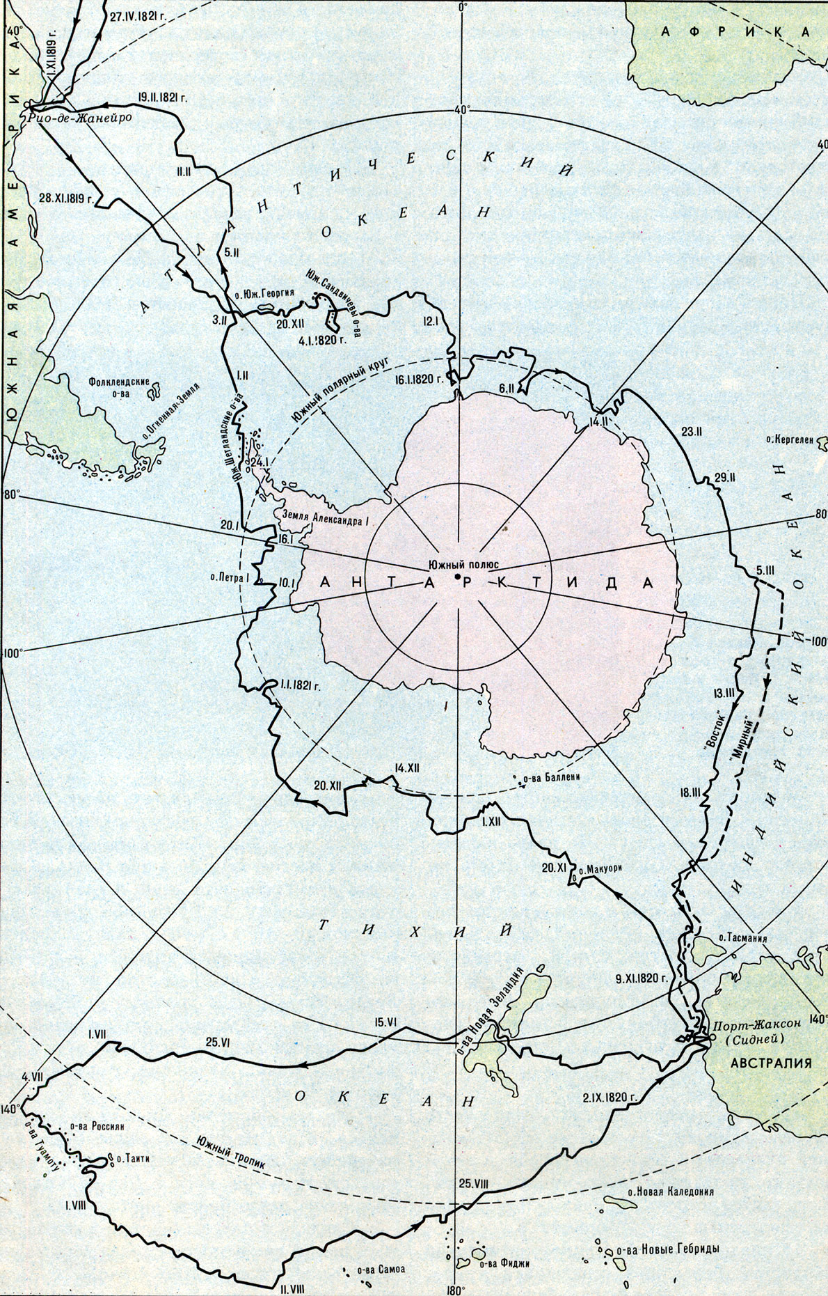 Кругосветное плавание Джеймса Кука в Южном океане продолжалось 1003 дня, из них только 75 дней Кук провел южнее 60-й параллели. Кругосветное плавание русской экспедиции продолжалось 535 дней, и за 60-й параллелью корабли находились почти четверть этого времени - 122 дня.