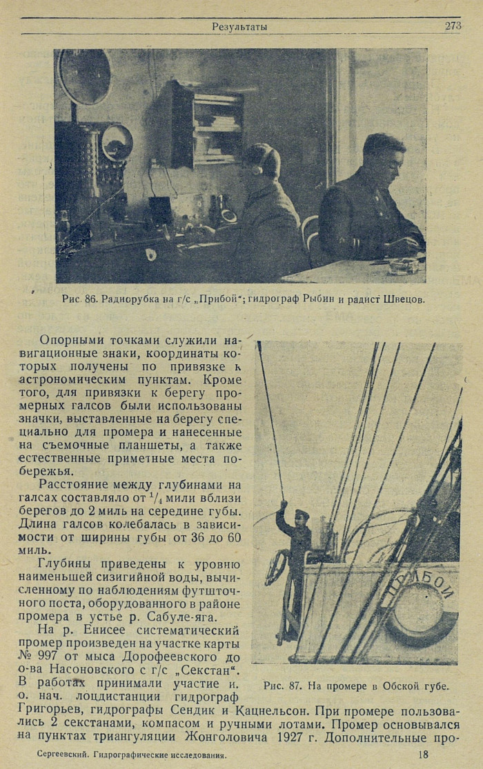 На Енисее, при небольшой длине галсов и наличии опорных тригонометрических точек, определения велись исключительно секстаном по углам.