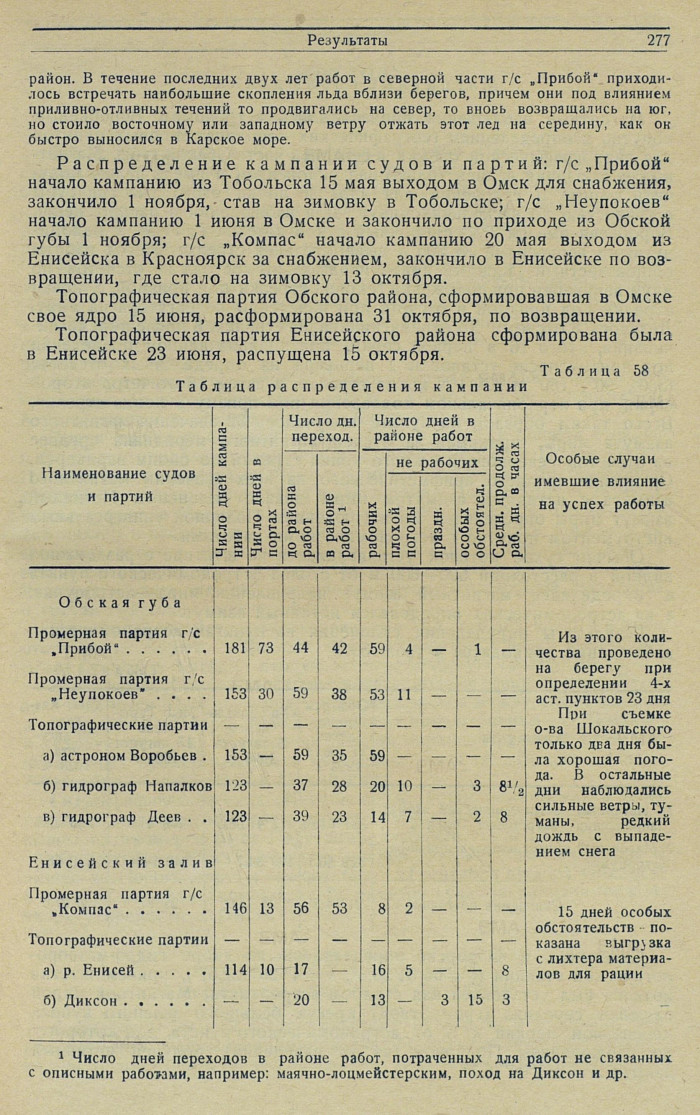 {1} Число дней переходов в районе работ, потраченных для работ не связанных с описными работами, например: маячно-лоцмейстерским, поход на Диксон и др.[277]