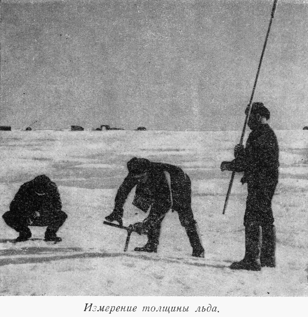 Для гидрологических наблюдений продолбили новую лунку. Чтобы лунка не замерзла, ее закрыли двухстворчатой утепленной крышкой. Под этой крышкой находилась 200—300-ваттная электрическая лампа, которая постоянно обогревала и освещала лунку.