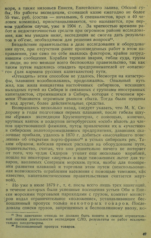 {21} Это замечание отнюдь не должно быть понято в смысле отрицательной оценки деятельности экспедиции СЛО, результаты ее работ исключительно плодотворны.{22} Беспошлинный пропуск товаров.[47]