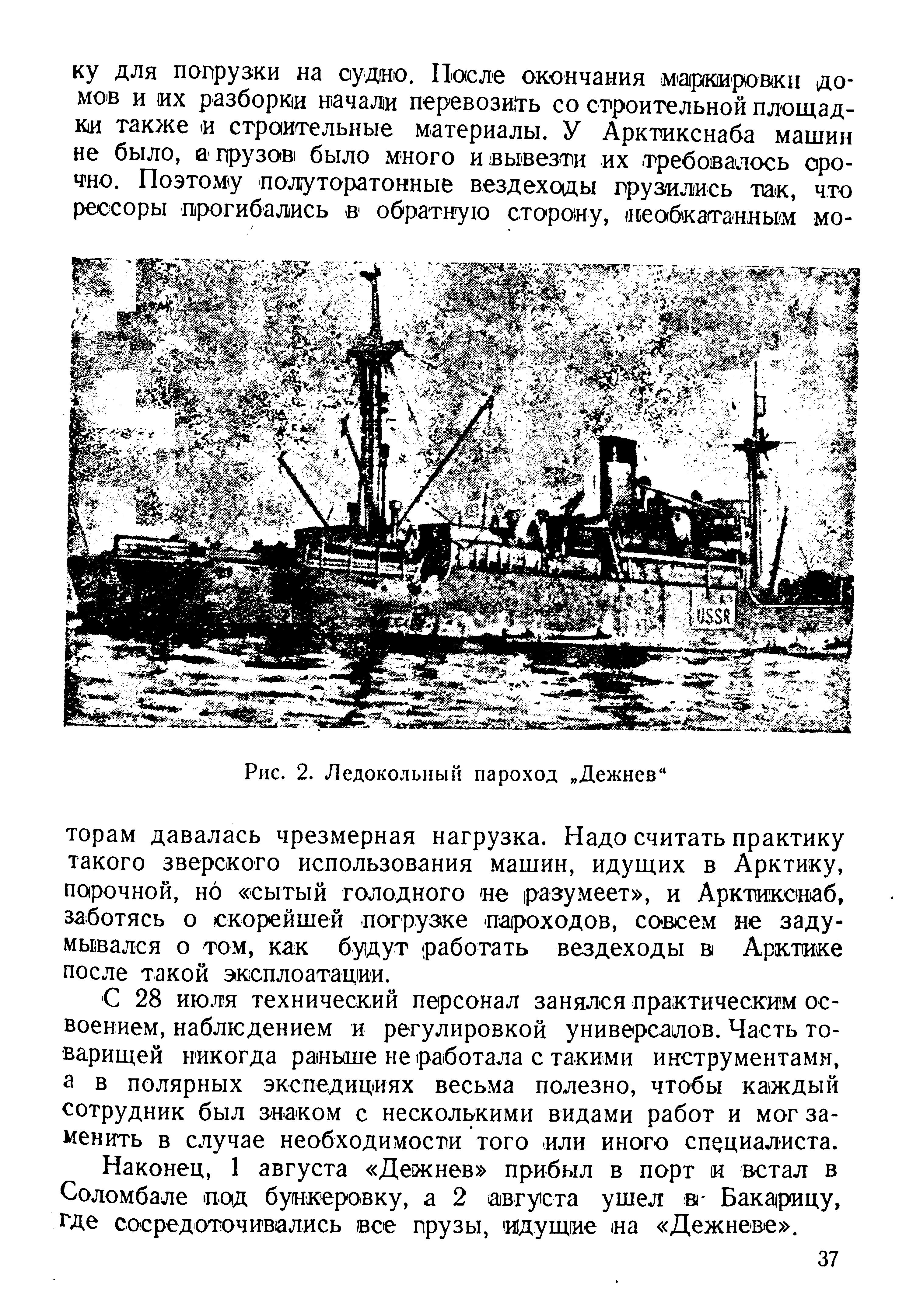 торам давалась чрезмерная нагрузка. Надо считать практику такого зверского использования машин, идущих в Арктику, порочной, но «сытый голодного не разумеет», и Арктикснаб, заботясь о скорейшей погрузке пароходов, совсем не задумывался о том, как будут работать вездеходы B Арктике после такой эксплоатации.