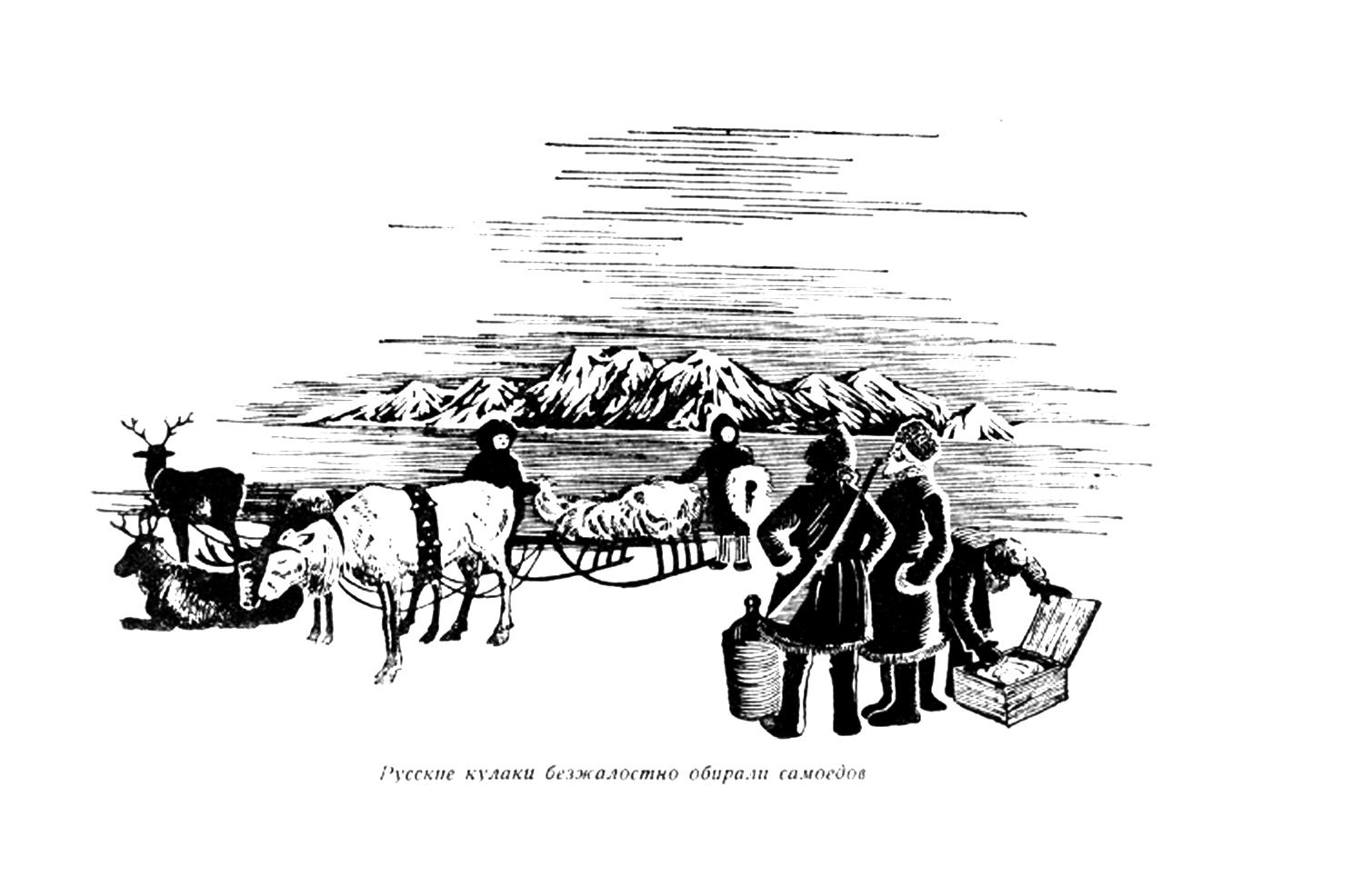 В то время самоеды тащили хозяину за вино свои лучшие меха - добычу долгой суровой полярной зимы. Русские кулаки безжалостно обирали самоедов.