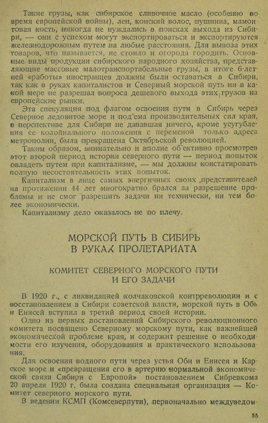 Таким образом, внимательно и вполне объективно просмотрев этот второй период истории северного пути — период попыток овладеть путем при капитализме, — мы должны констатировать полную несостоятельность этих попыток.