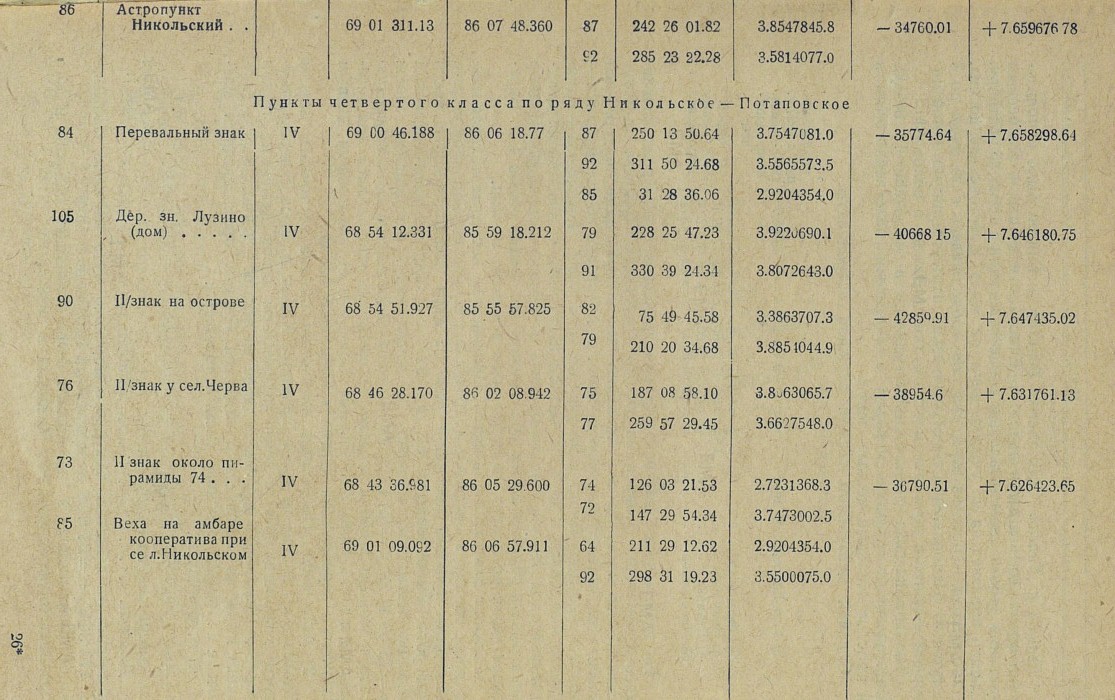 Координаты, вычисленные от астропункта Потаповского... 69 01 32.608 — 86 07 40.886 —