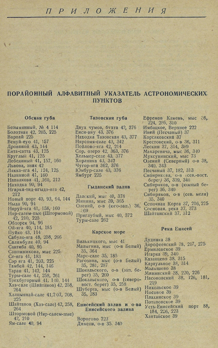 Значительная часть схем расположения астропунктов была прислана из Сибирского Гидрографического управления Главсевморпути при содействии В. И. Воробьева и П. Я. Напалкова.