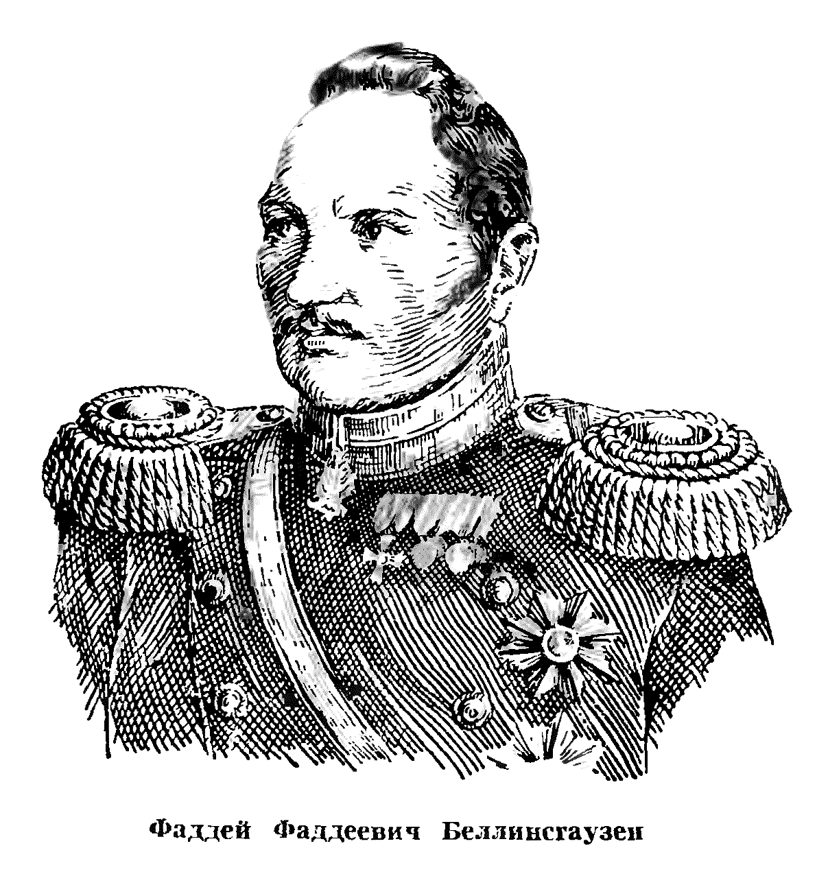 Перед отплытием в кругосветное плавание Беллинсгаузен получил от морского министра инструкцию, согласно которой суда должны были обозреть остров Южную Георгию, находящийся под 55° южной широты, а оттуда отправиться к островам Новым Сандвичевым и, обойдя их с восточной стороны, спуститься к югу и «продолжать свои изыска ния до отдаленнейшей широты, какой только он может достигнуть; употребить всевозможное старание и величайшее усилие для достижения сколько мож но ближе к полюсу, отыскивая неизвестные земли, и не оставить сего предприятия иначе, как при не преодолимых препятствиях. Ежели под первыми ме ридианами, под коими он пустится к югу, усилия его останутся бесплодными, то он должен возобновить свои покушения под другими, не упуская ни на минуту из виду главную и важную цель, для коей он отправлен будет, повторяя сии покушения ежечасно как для открытия земель, так и для при ближения к южному полюсу» [Ф. Ф. Беллинсгаузен, Двукратные изыскания в Южном Ледовитом океане, т. I, СПб., 1831, стр. 16-17].