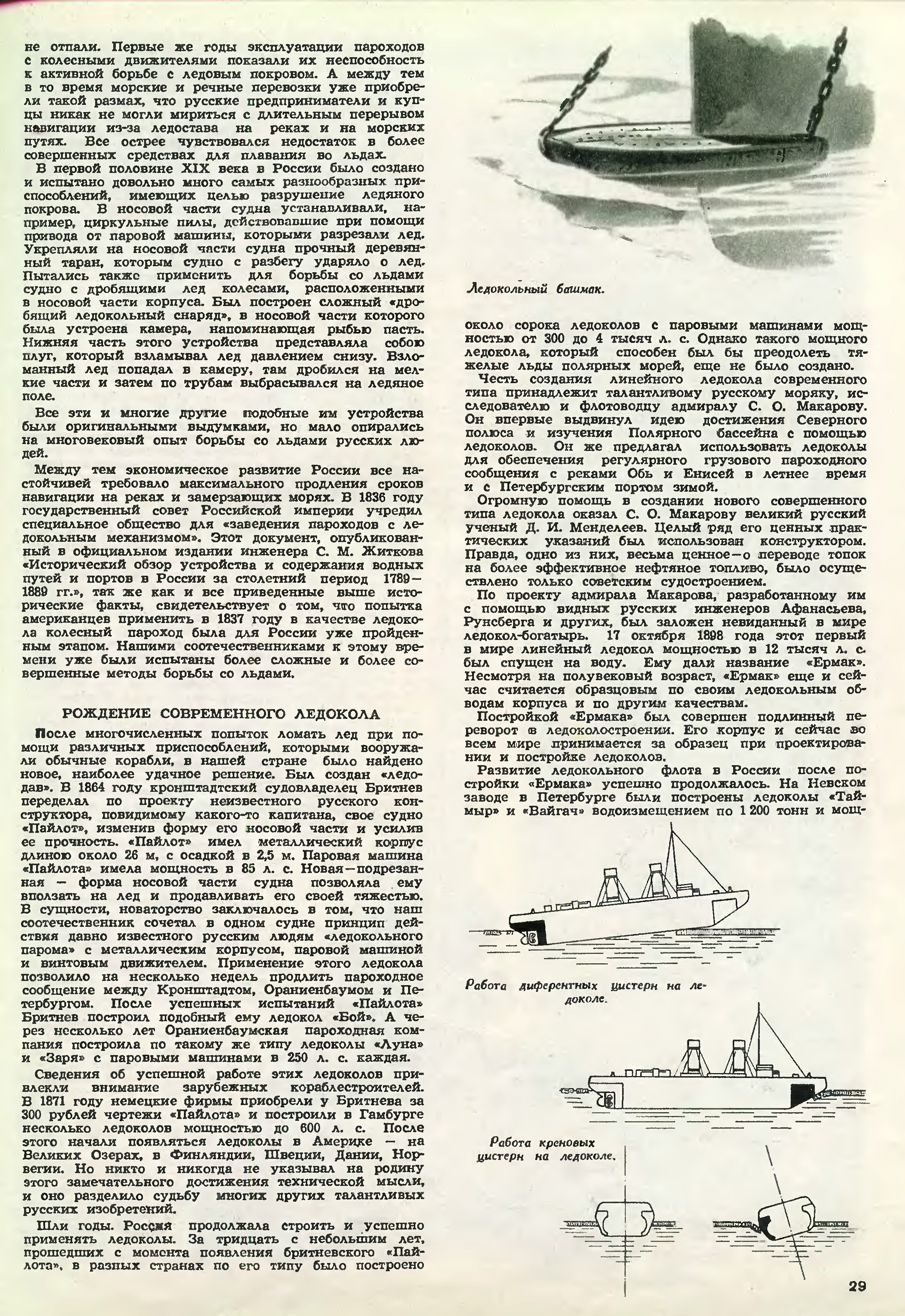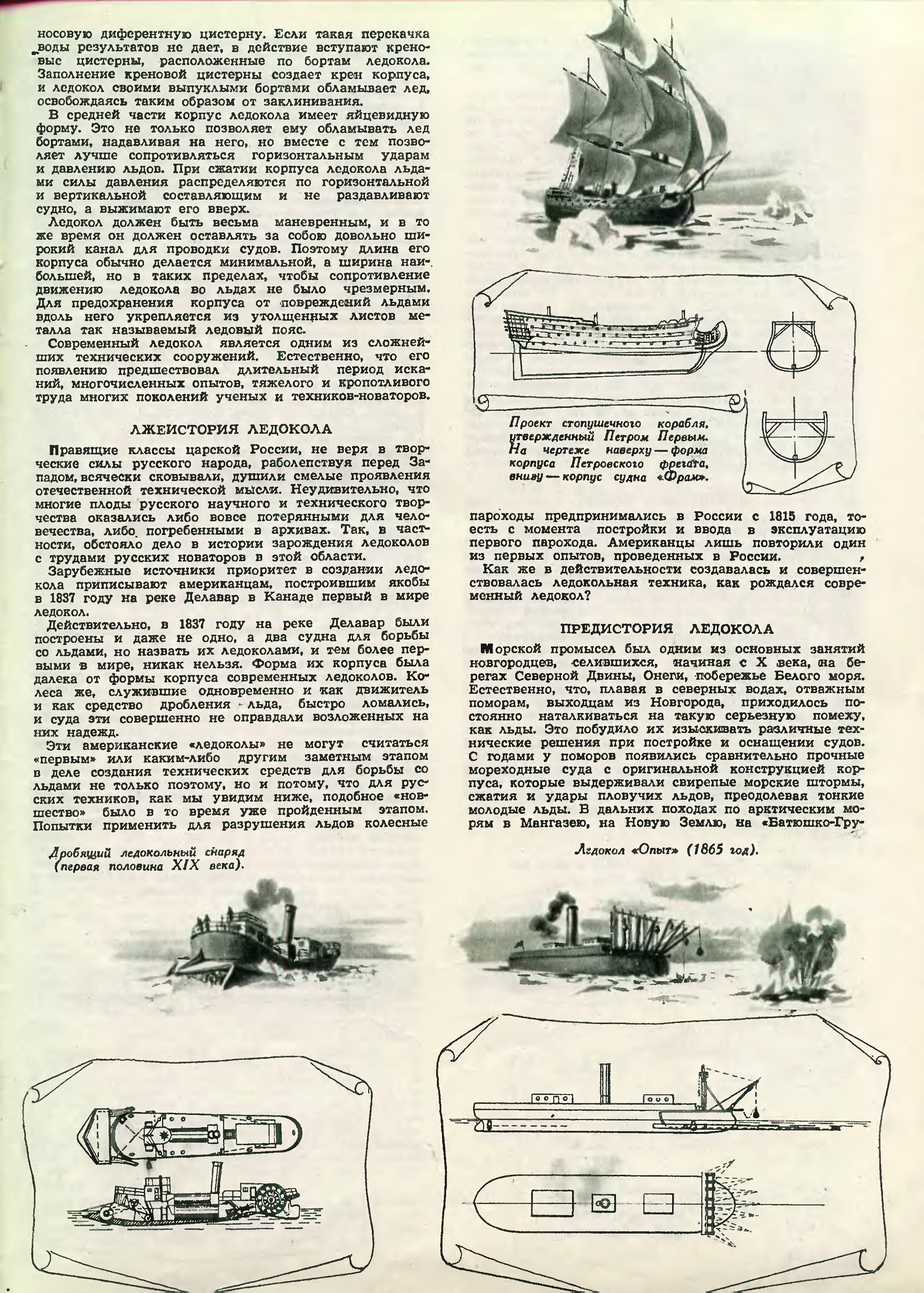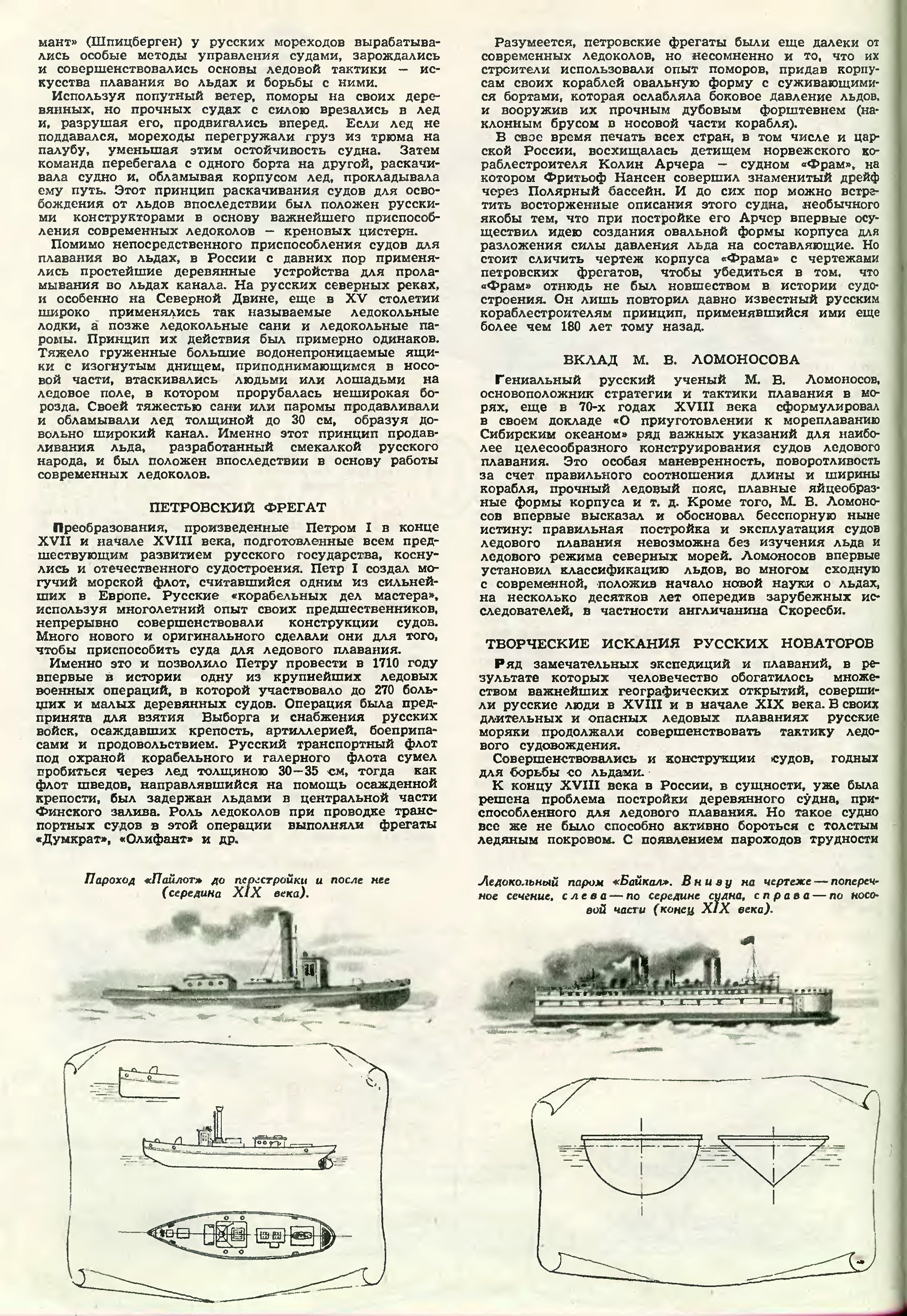 Многие морские державы (США, Англия, Германия, Норвегия, Швеция и др.) с давних пор пытались разрешить задачу борьбы со льдами, но только в нашей стране впервые было положено начало созданию действенных средств для преодоления ледового покрова. Ныне льды замерзающих морей не представляют непреодолимого препятствия для советских кораблей.