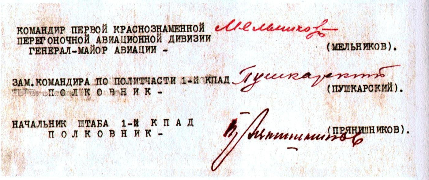 ИЗ ИСТОРИЧЕСКОГО ФОРМУЛЯРА 1-Й КРАСНОЗНАМЕННОЙ ПЕРЕГОНОЧНОЙ АВИАЦИОННОЙ ДИВИЗИИ