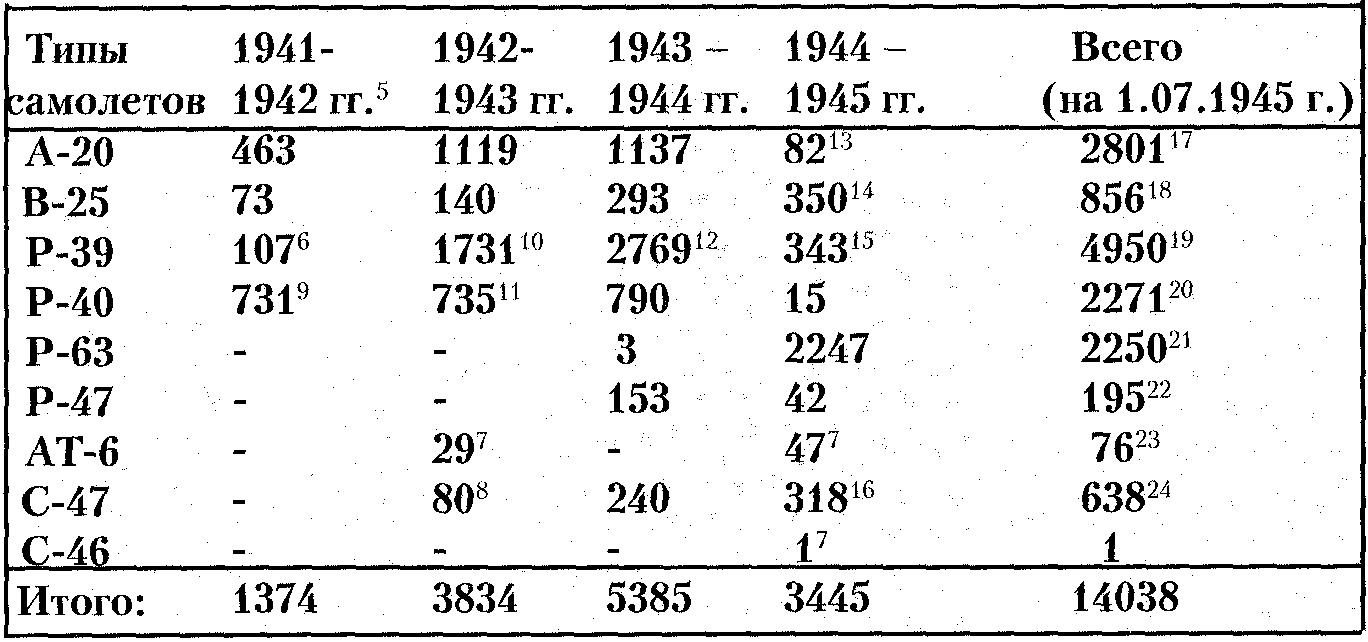 9. В течение трех месяцев (октябрь-декабрь) 1942 г. частями Красноярской воздушной трассы ВВС КА в тяжелых условиях северной зимы попутно с освоением трассы и новой материальной части перегнано из Фербенкса (США) на нашу территорию 114 самолетов, из них: