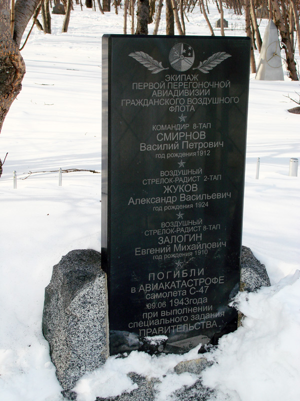 20 ноября 1942 г. — при перелёте из Сеймчана в Якутск катастрофа самолёта А-20 в районе Сусумана. Похоронены в пос. Кадыкчан Магаданской области: