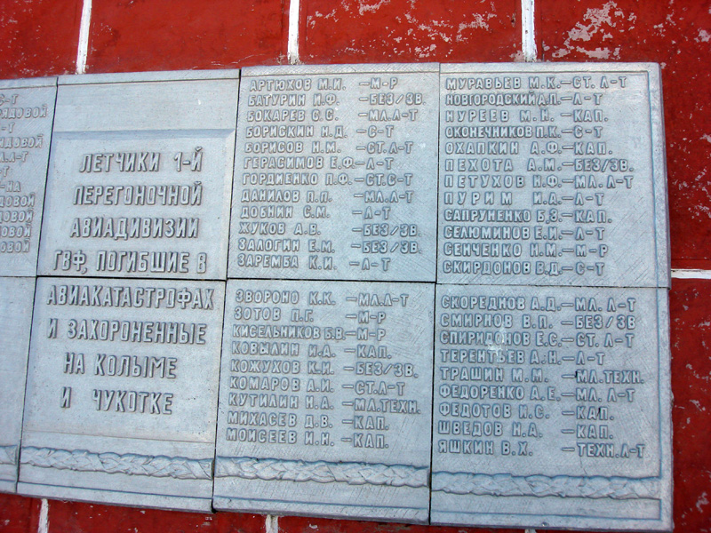 Логично предположить, что памятник военным лётчикам, погибшим при обслуживании трассы «Аляска-Сибирь», лучше бы смотрелся в местах, где происходили события военных лет. И такие памятники есть – практически в любом месте вдоль трассы, где в годы войны были построены основные и запасные аэродромы (сама трасса, как известно, пролегала значительно севернее Магадана). Последний, если мне не изменяет память, установлен в ноябре 2002 г. в Якутске. До этого в разное время были установлены памятники и памятные знаки в Эгвекиноте, Марково, Сеймчане, Аркагале, Кадыкчане, Тал-Юряхе и далее по карте.