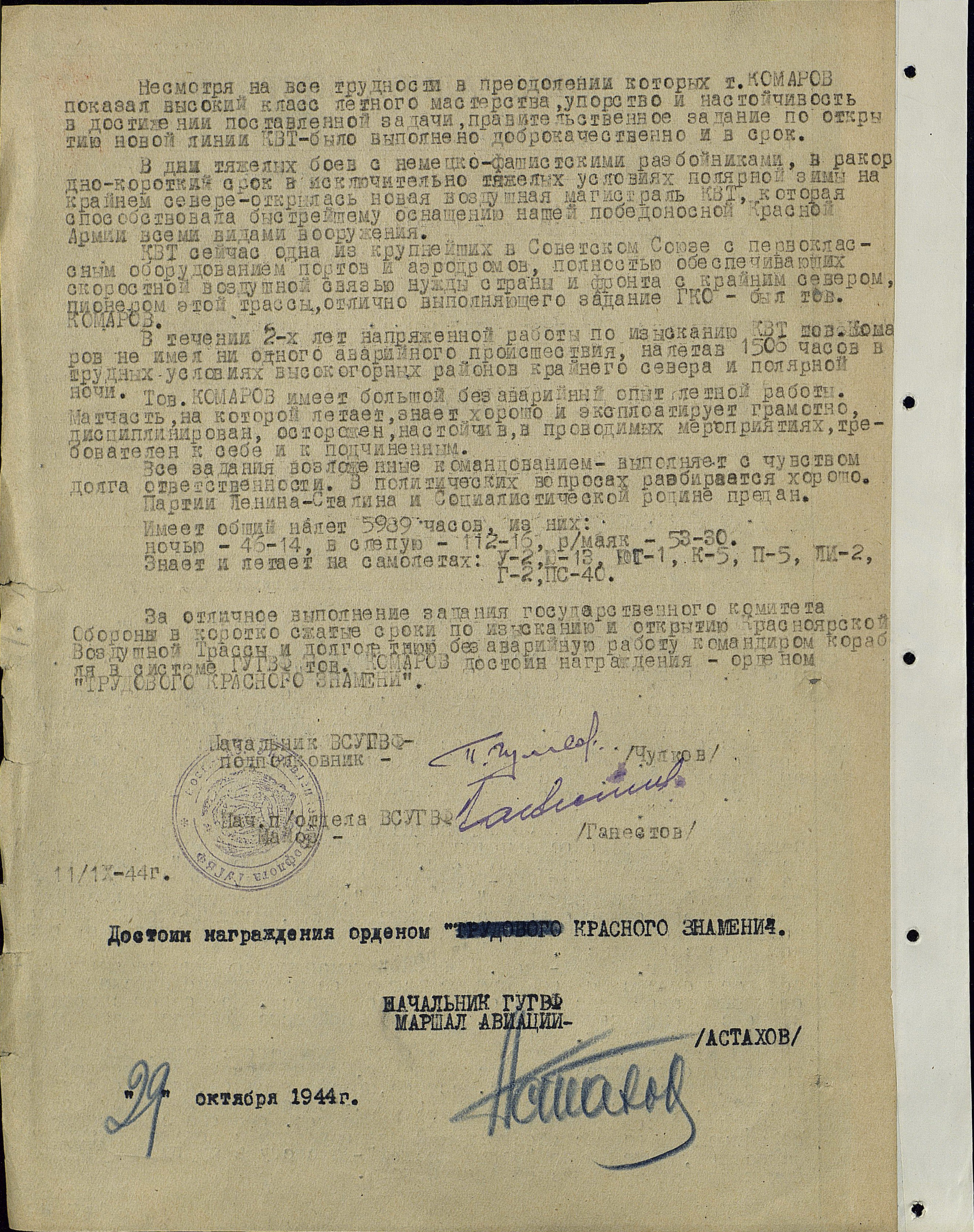 В тридцатых годах Петр Комаров бороздил небо всего Союза. Много раз летал в магаданские и другие ГУЛАГи, забирал там золото, добытое «врагами народа», среди которых большинство были русские люди. Участвовал в авиапарадах в Тушино. Видел там Сталина. Петр Тихонович — участник Великой Отечественной войны.