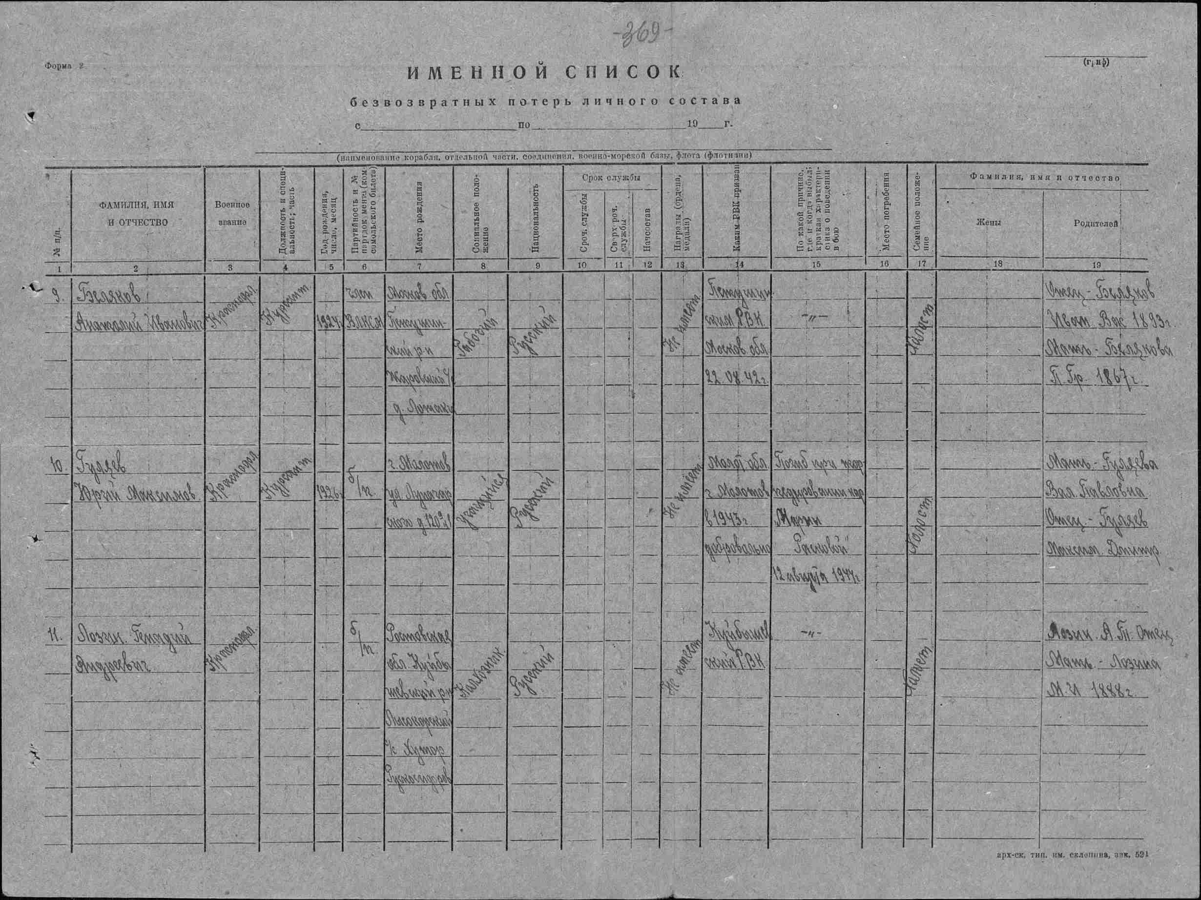 Донесения о безвозвратных потерях №6/01073 от 23.09.1944 г. ОРСО СФ (вх.3410с от 03.10.1944 УПК ВМФ)