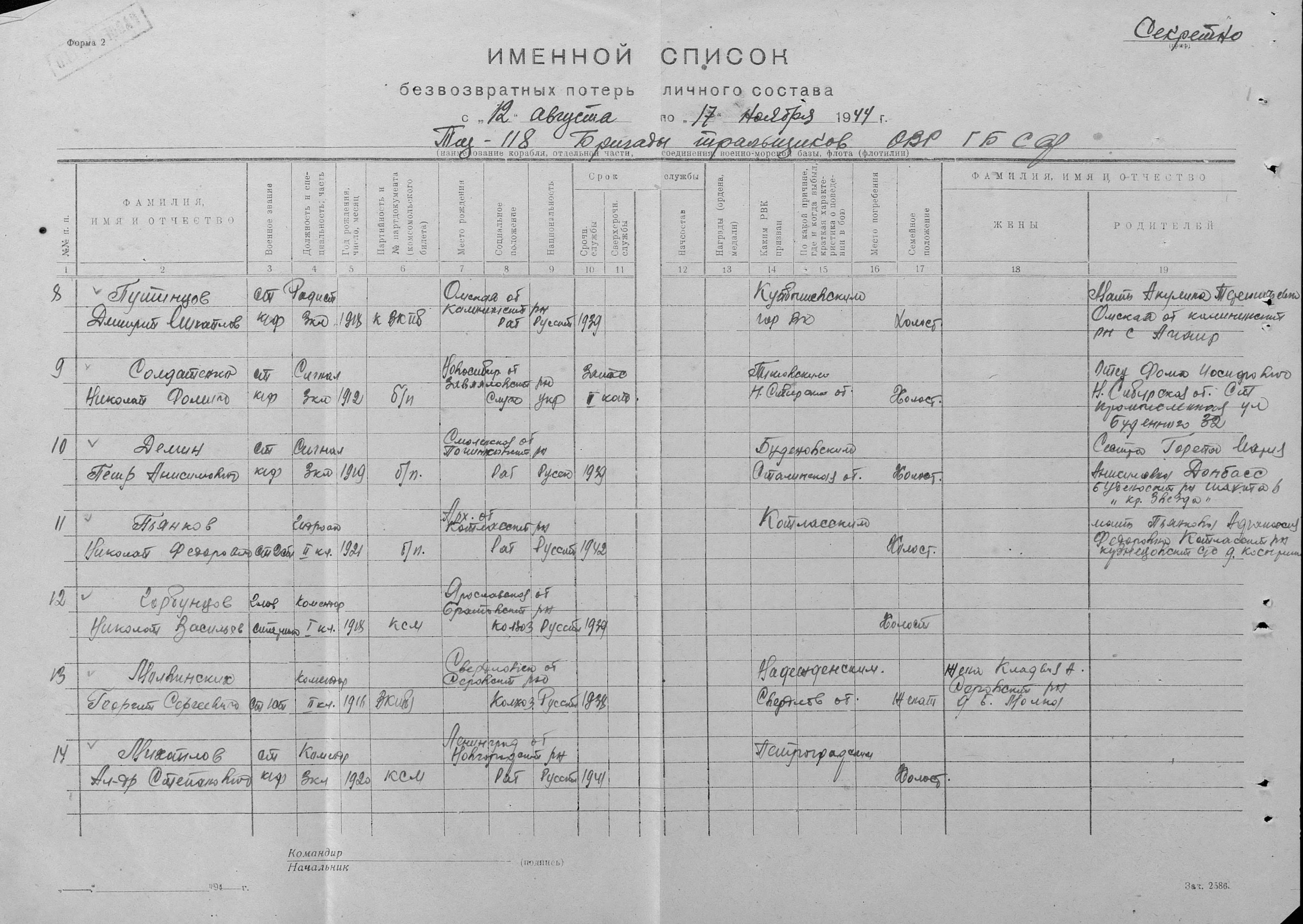 Донесение о безвозвратных потерях 94682 от 14.06.1945 (ЦАМО, Ф. 58, О. 18003, Д. 803).