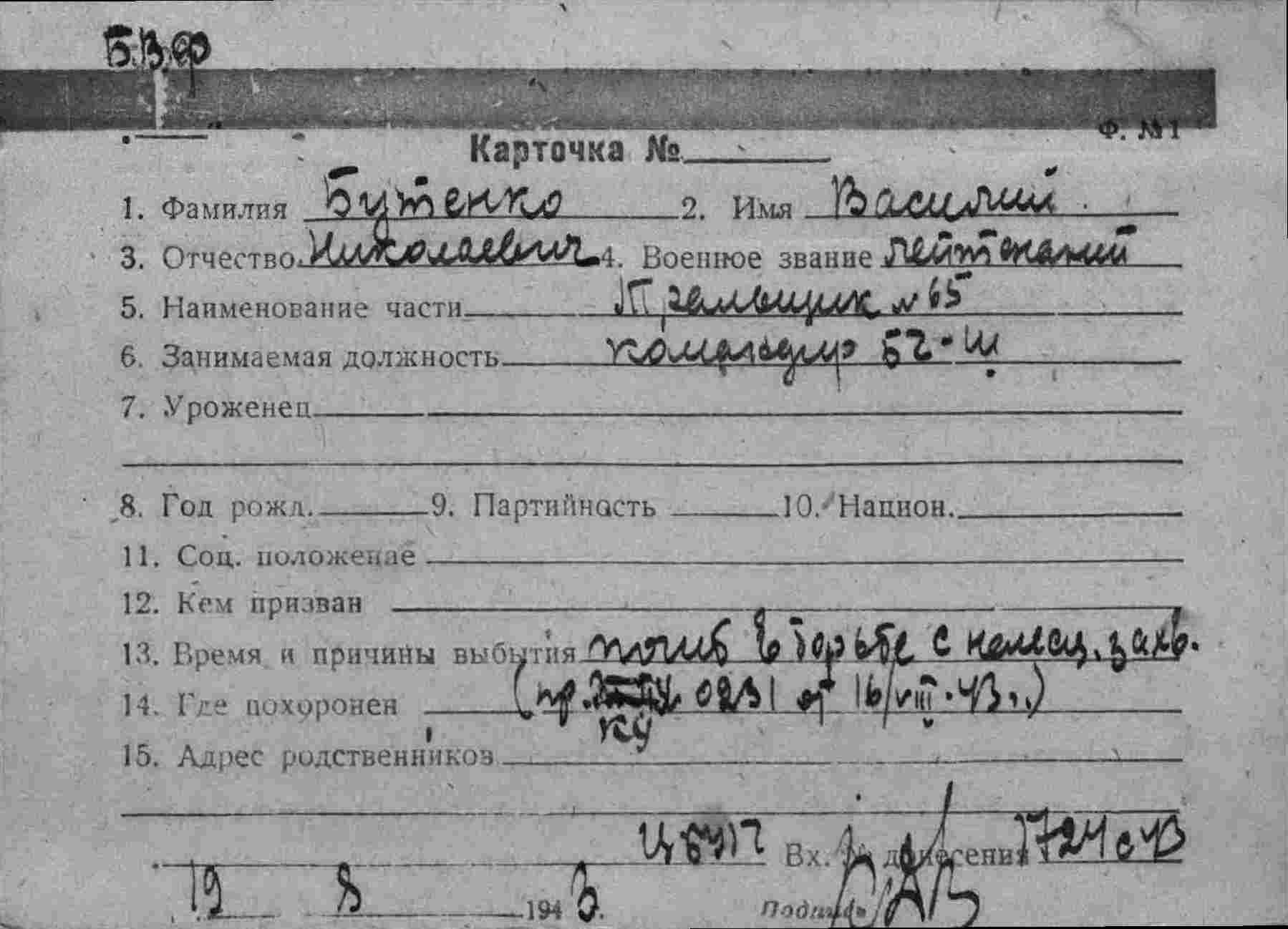 1. Бутенко В.Н (1913)., лейтенант, командир БЧ 2-3 (возможно-Бузенко ?)