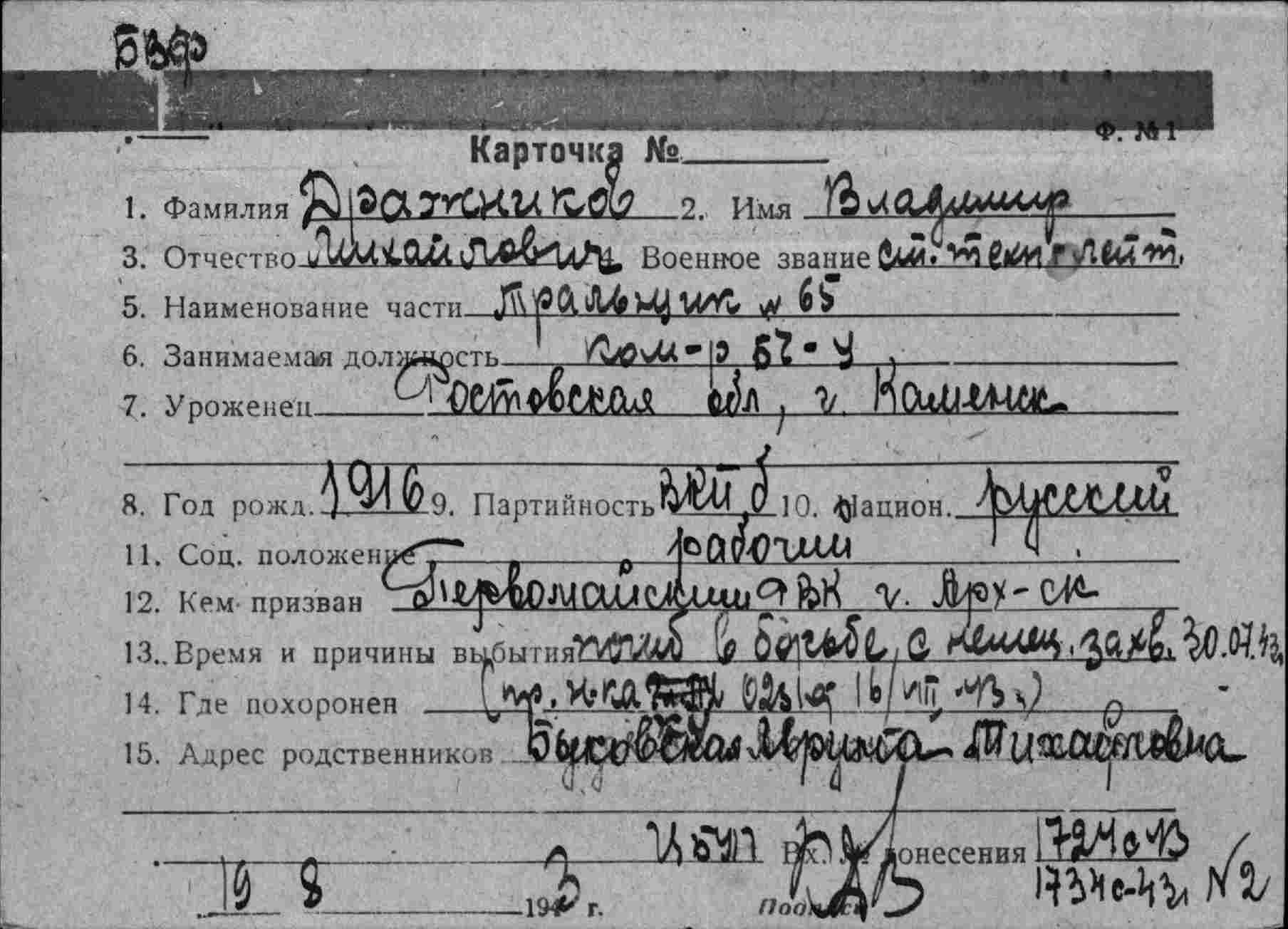 2. Дражников В.М. (1916), лейтенант, командир БЧ-5