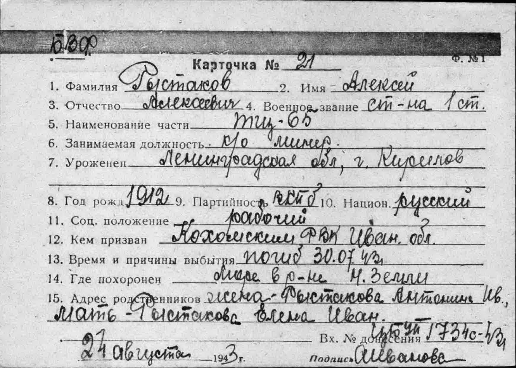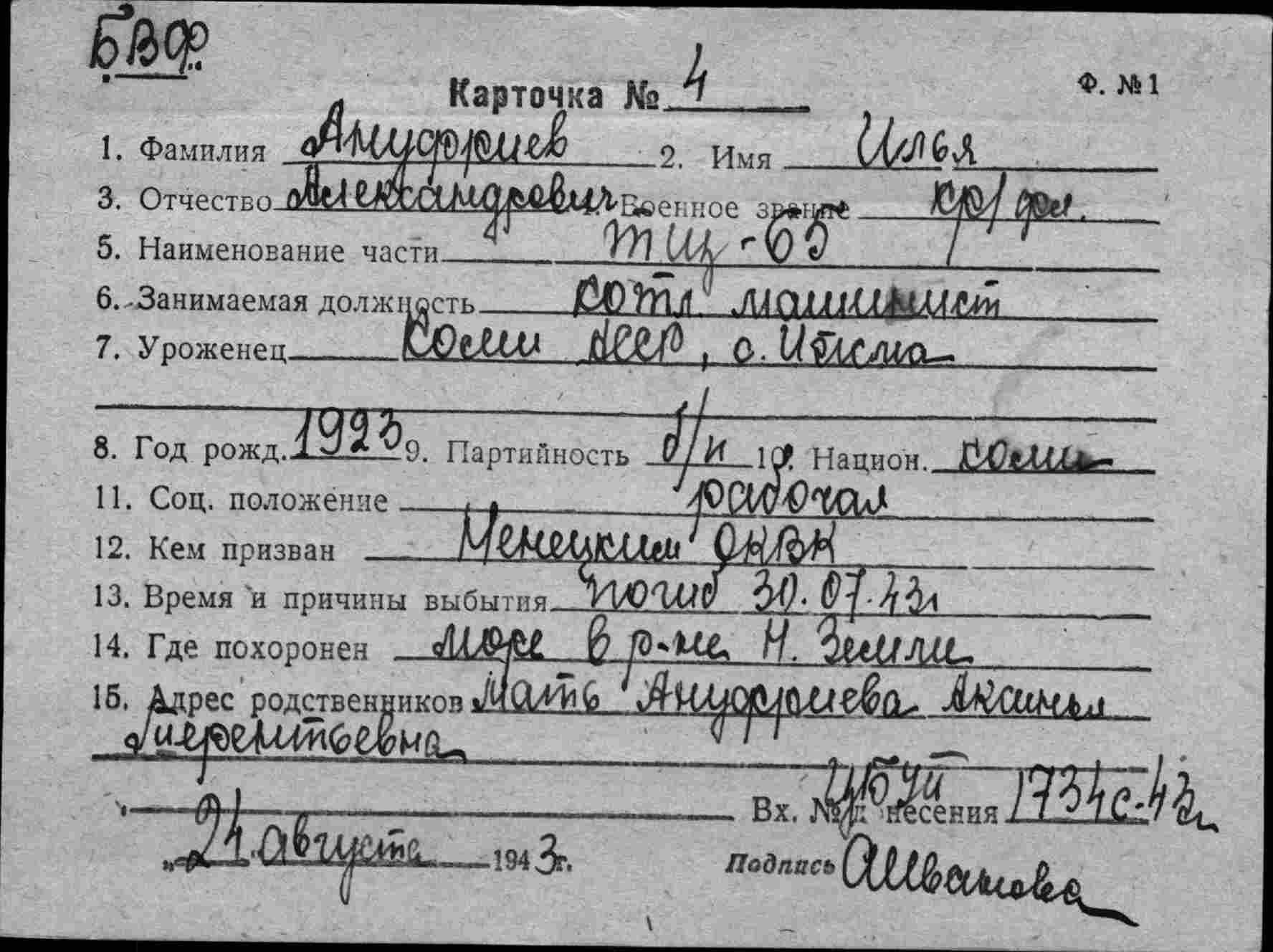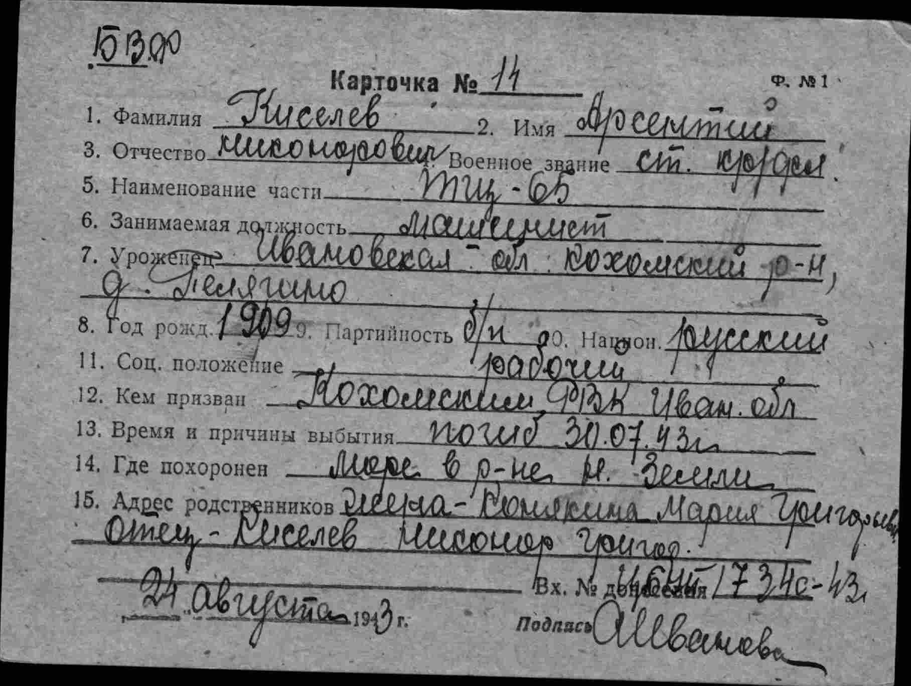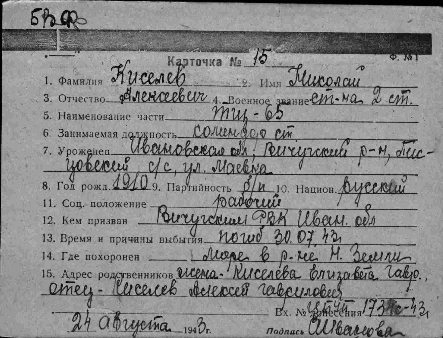 20. Киселев А.Н. (1909), краснофлотец, машинист