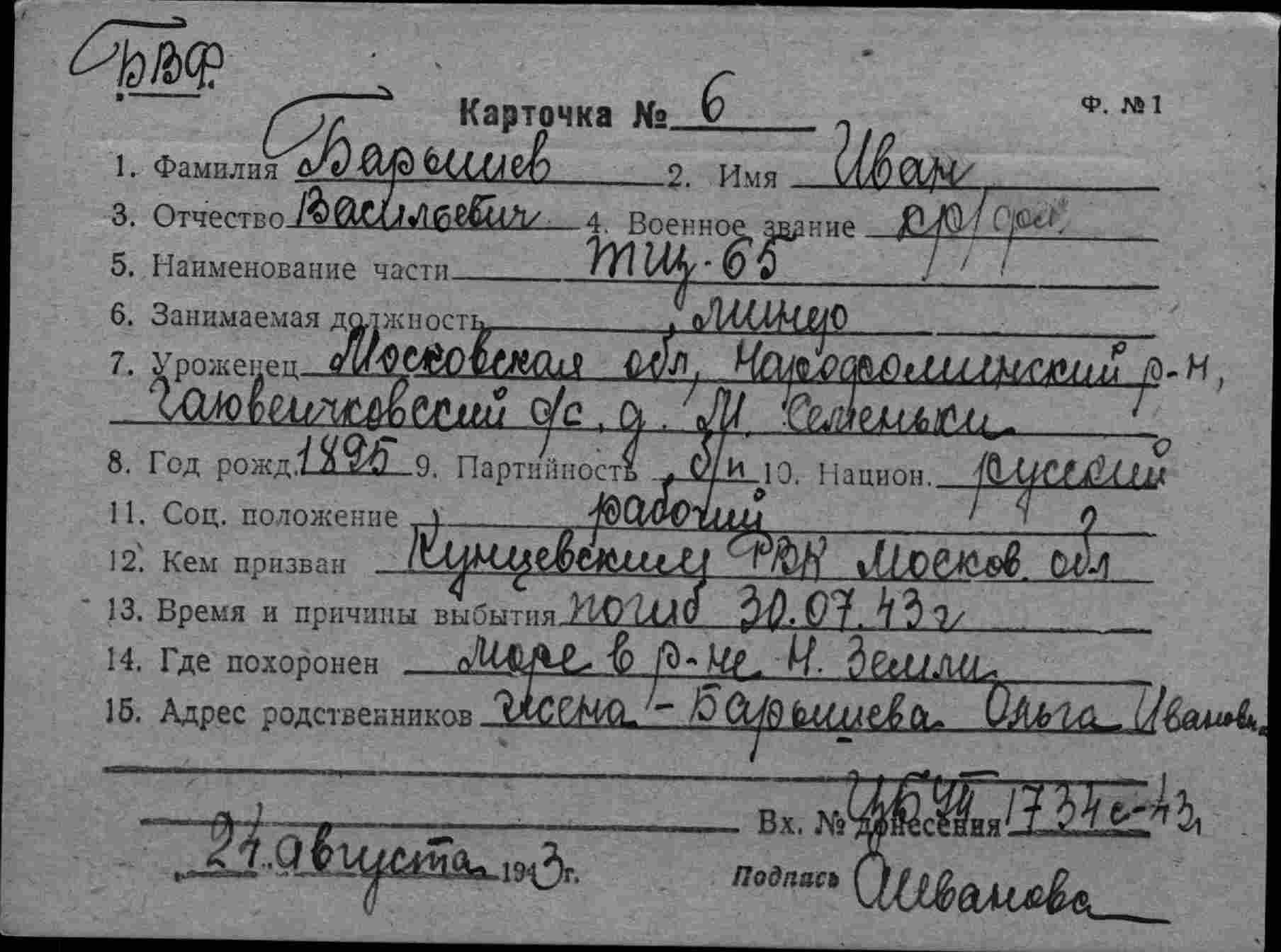 14. Барыщев И.В. (1895), краснофлотец, минер (возможно Барышев ?)