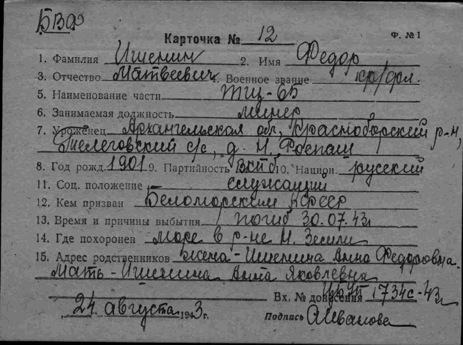19. Ишгнин Ф.М. (1901), краснофлотец, минер (возможно Ишенин ?)