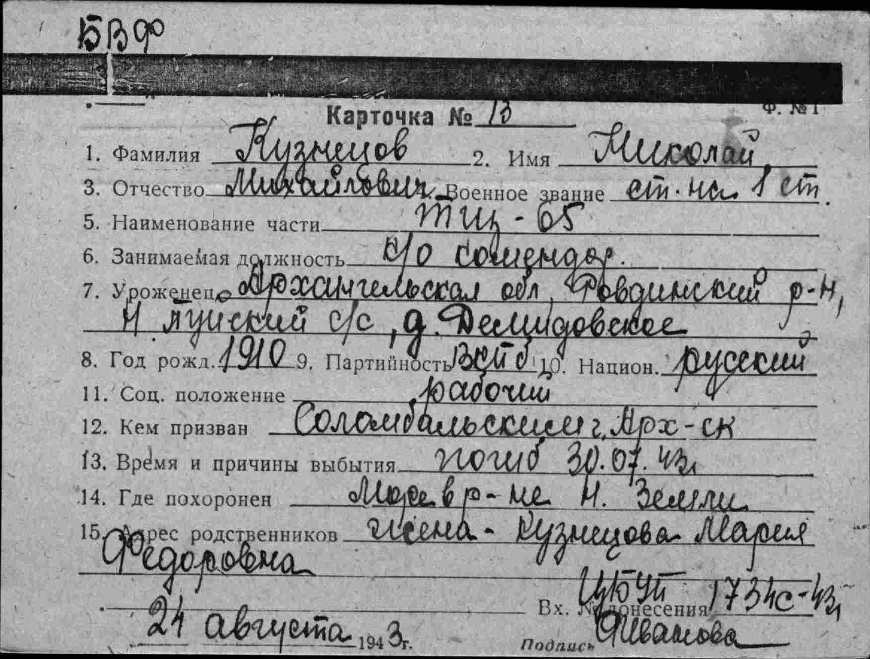 4. Кузнецов Н.М. (1910), старшина 1 статьи, командир отделения комендоров