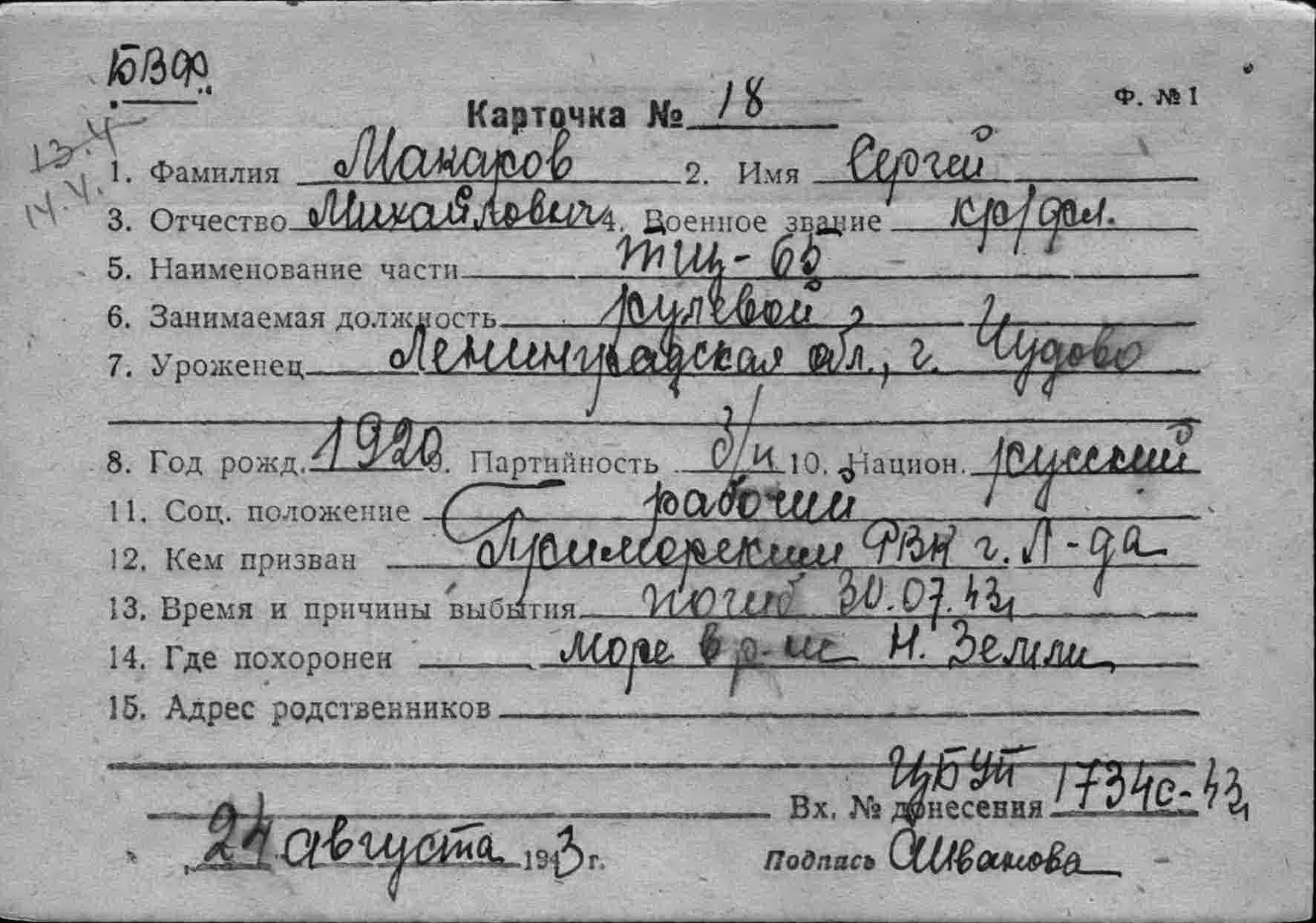 22. Макаров С.М. (1920), краснофлотец, рулевой