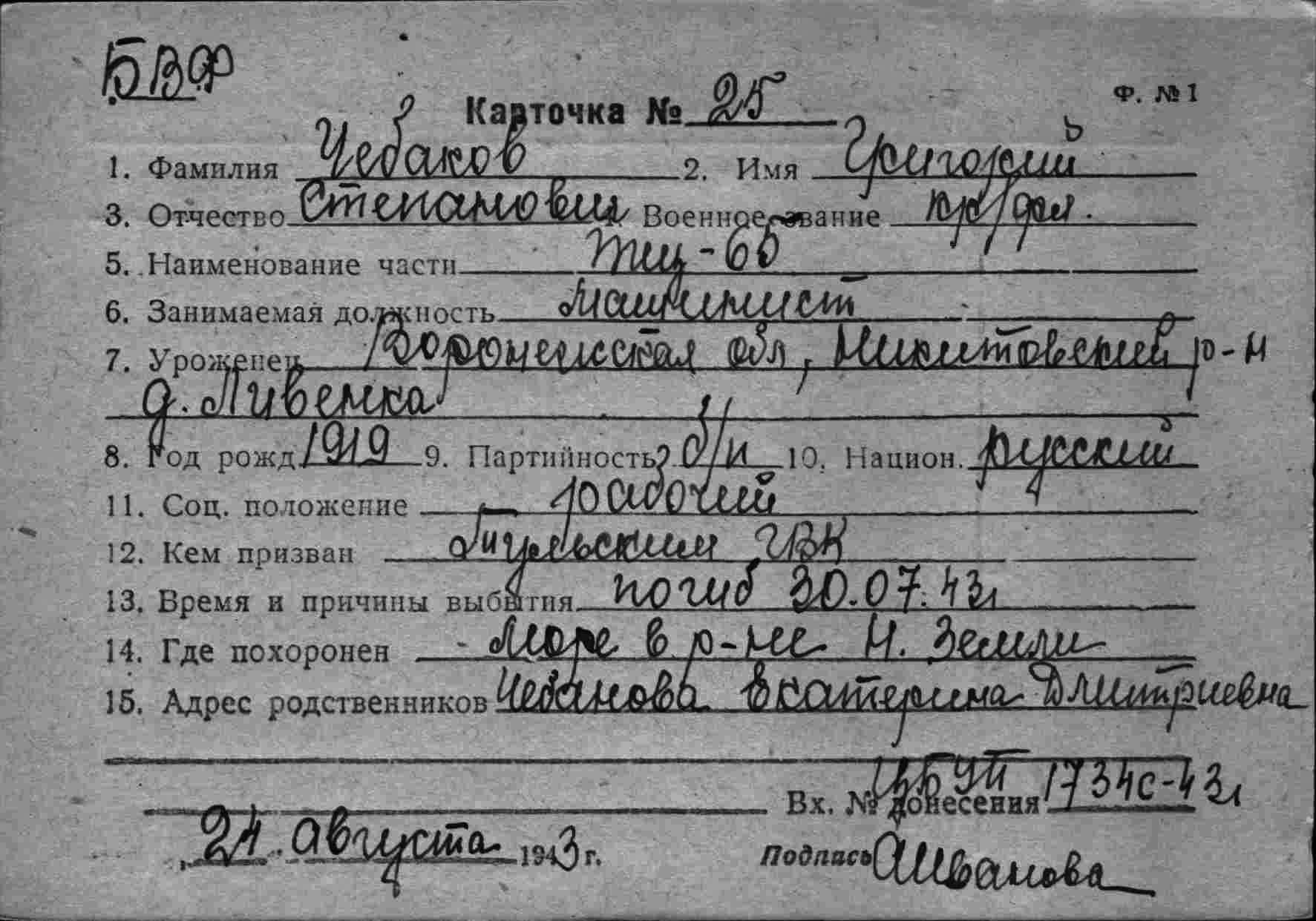 28. Чебаков Г.С. (1919), краснофлотец, машинист