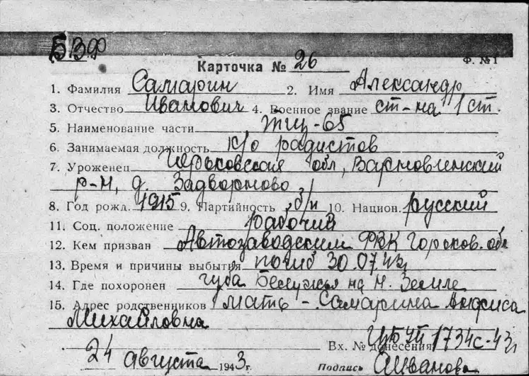 7. Самарин А.И. (1915), старшина 1 статьи, командир отделения радистов