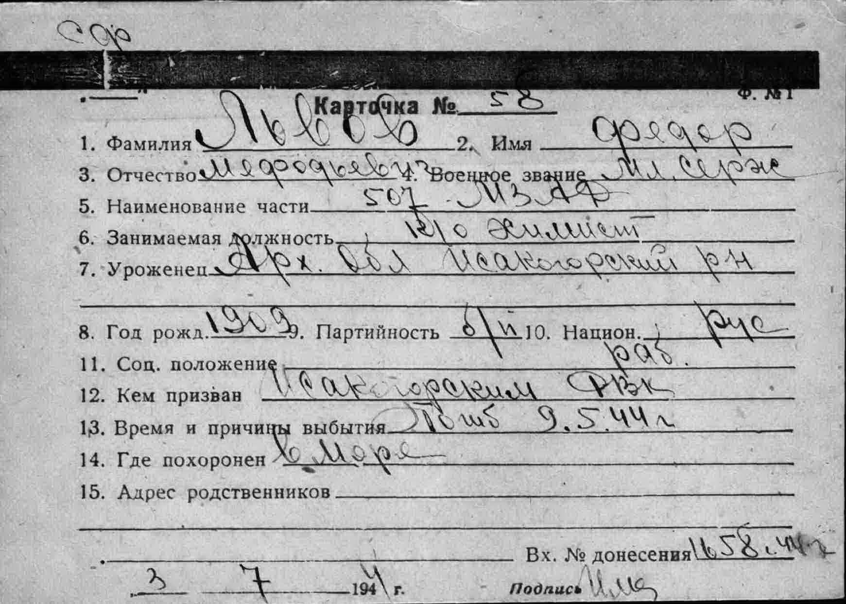 Львов Федор Мефодьевич,мл.с-т,к/о химист 507 МЗАД