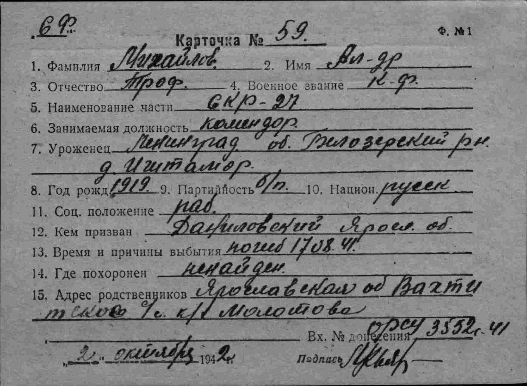 МИХАЙЛОВ Александр Трофимович, к/ф, комендор