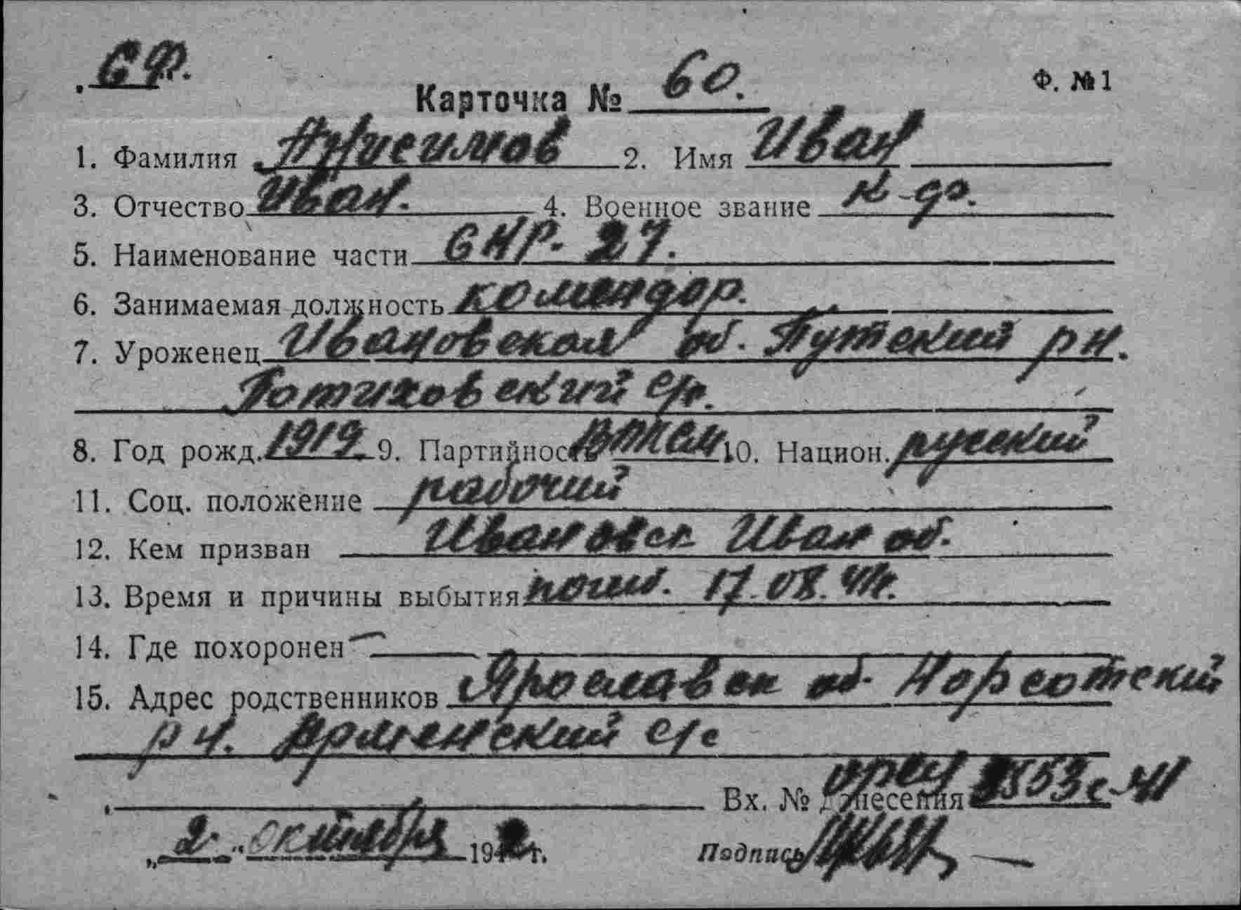 Дата и место призыва Ивановский РВК, Ивановская обл., Ивановский р-н