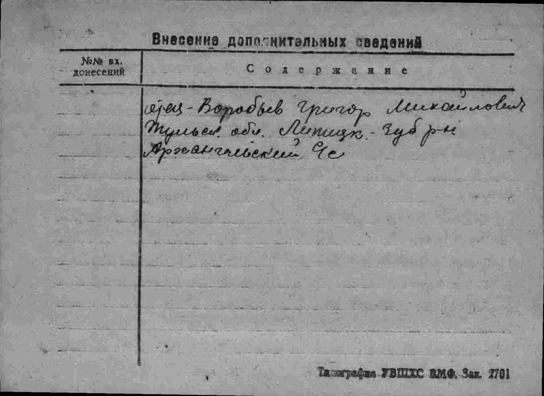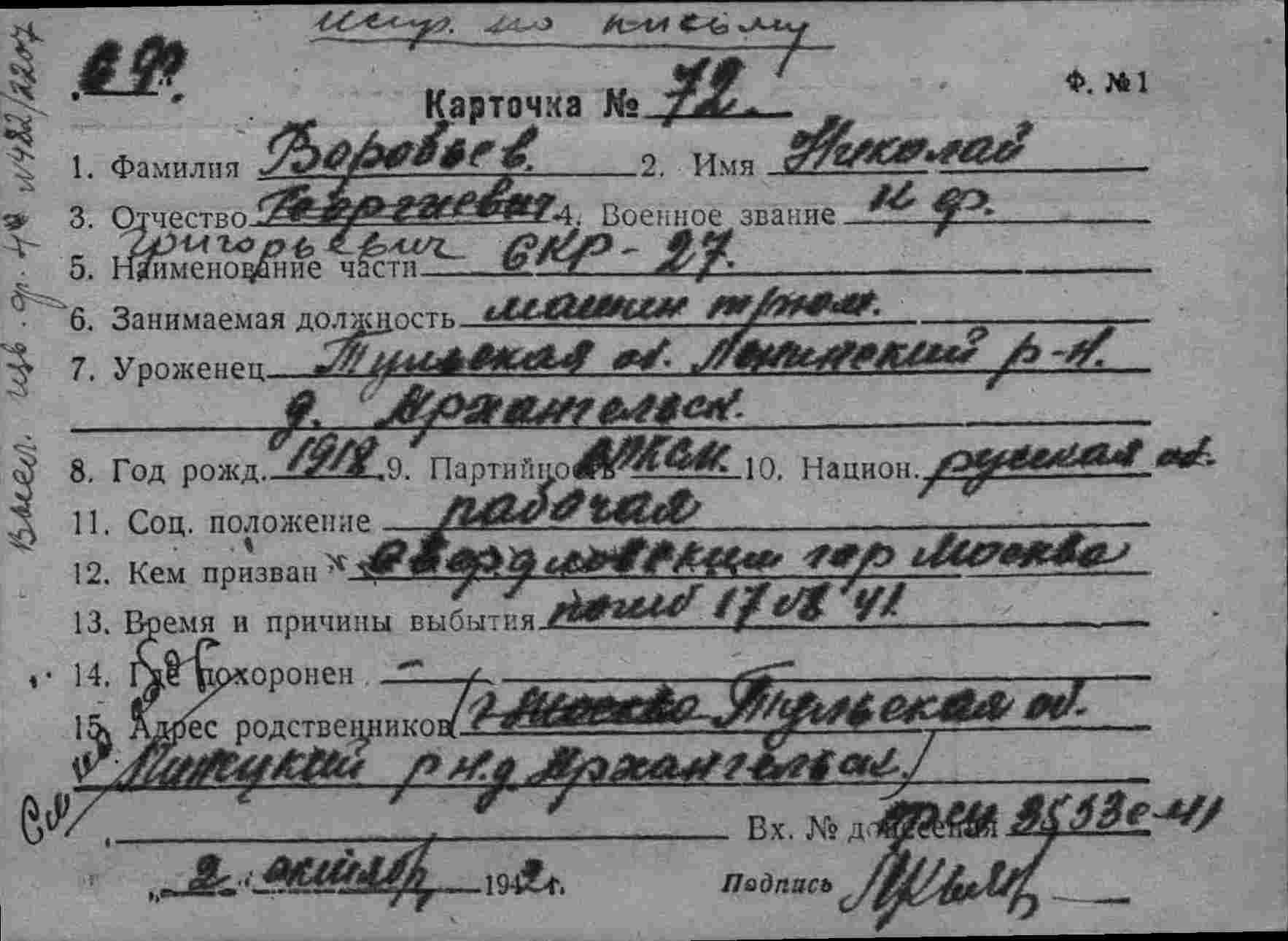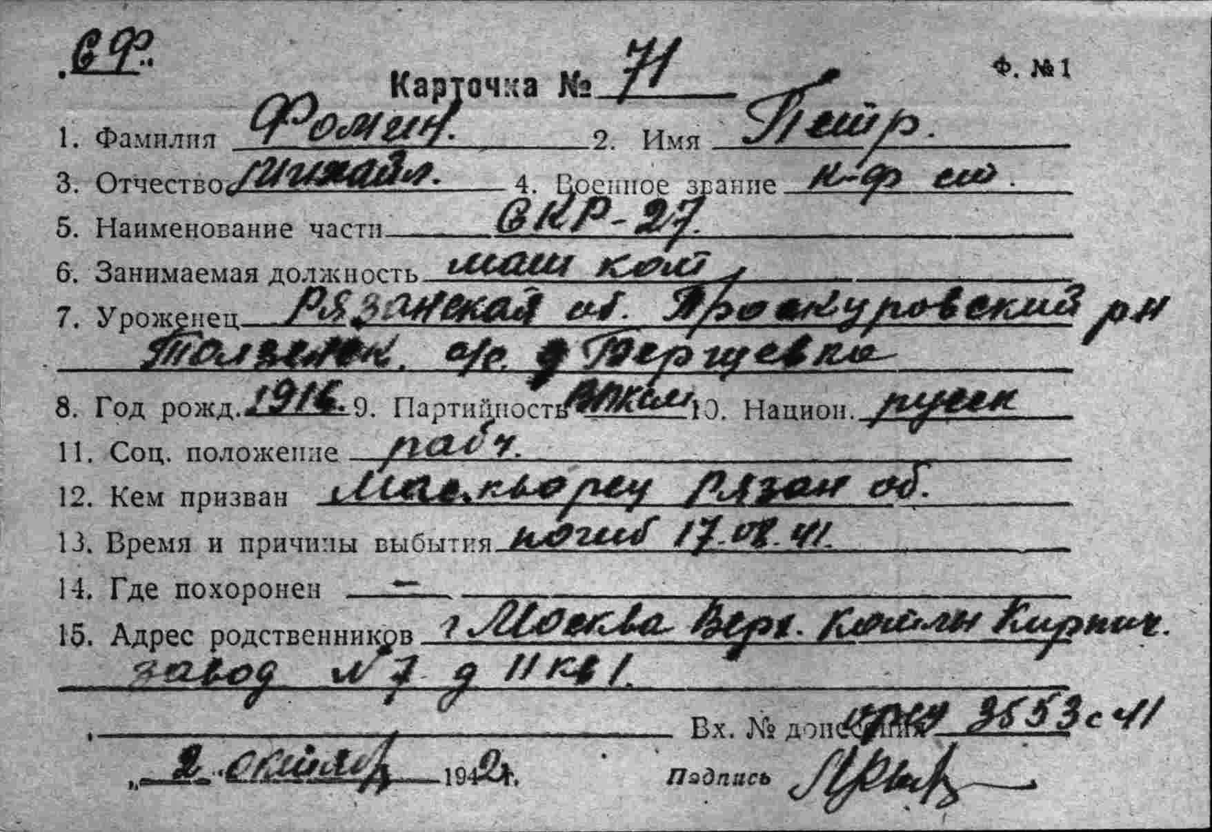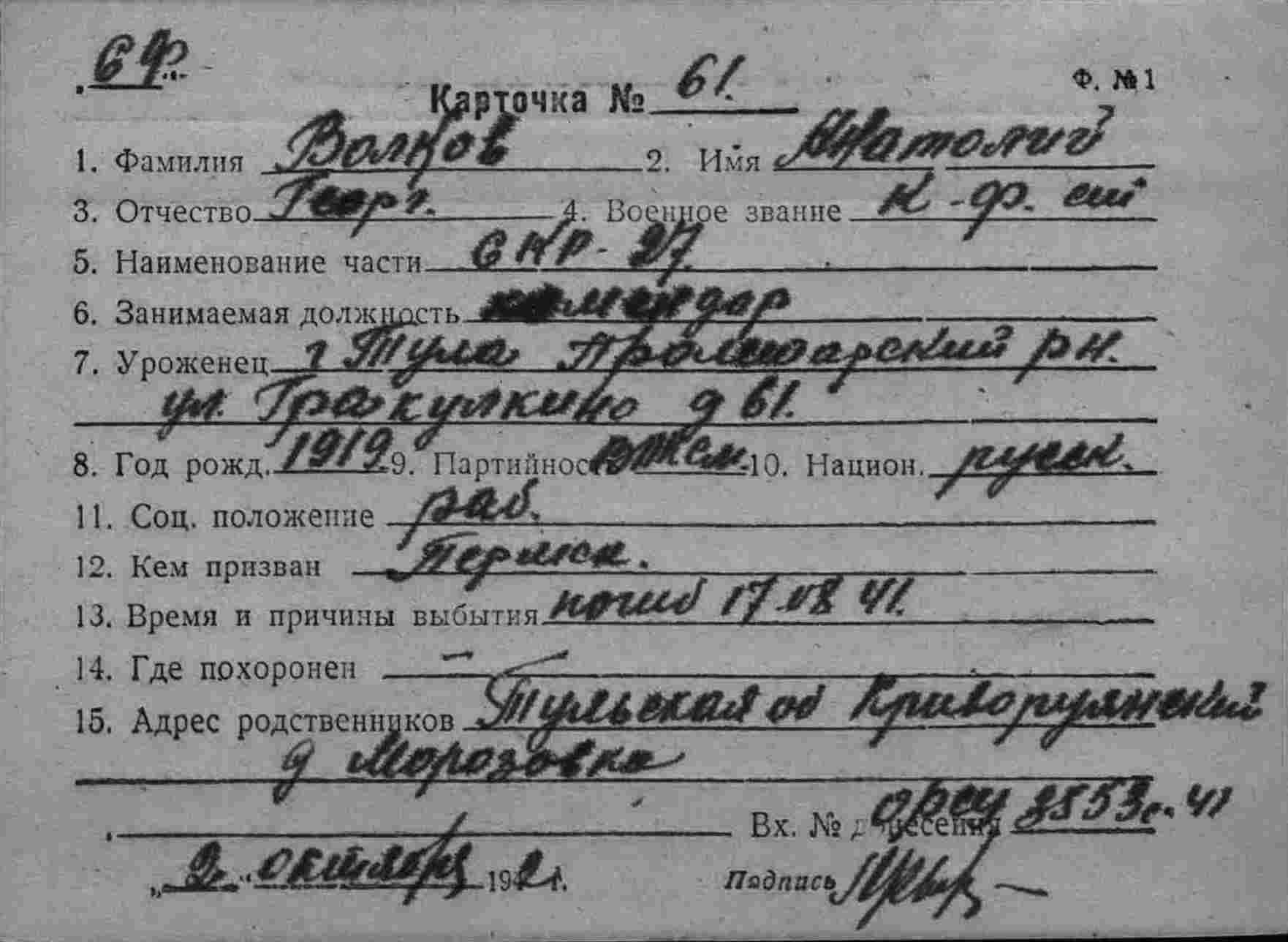 Дата и место призыва Пролетарский РВК, Тульская обл., г. Тула, Пролетарский р-н