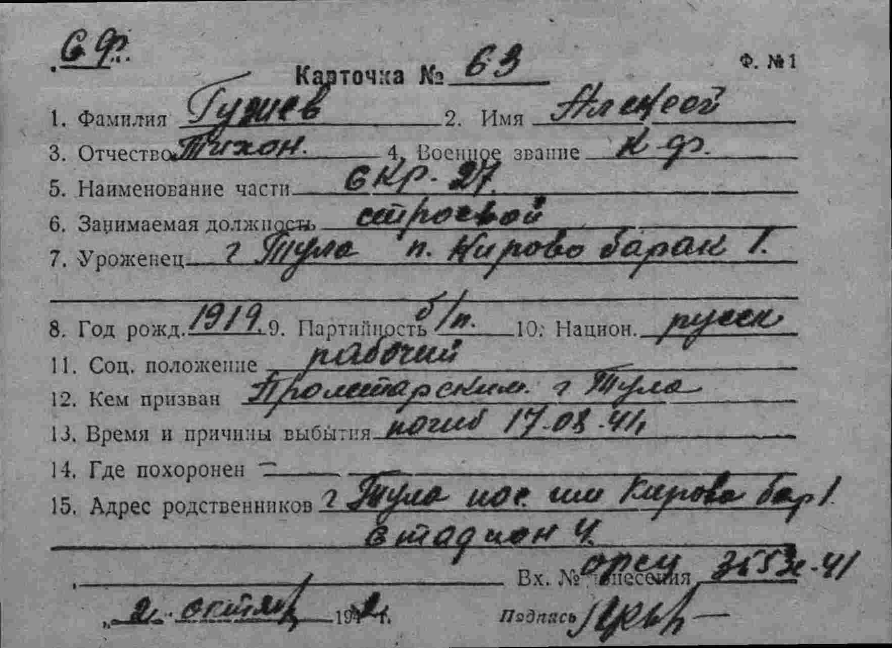 ГУЖЕВ Алексей Тихонович, к/ф, строевой