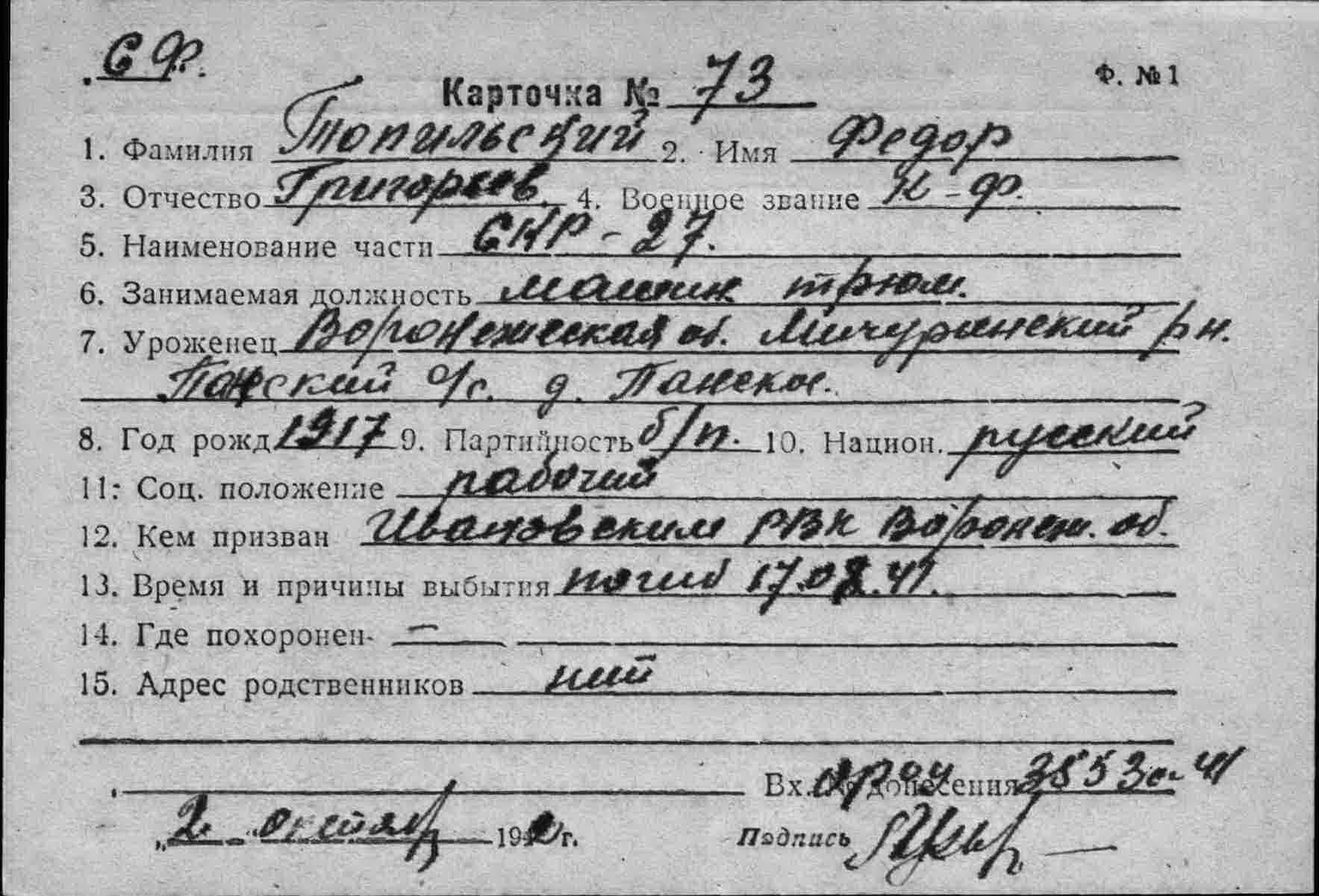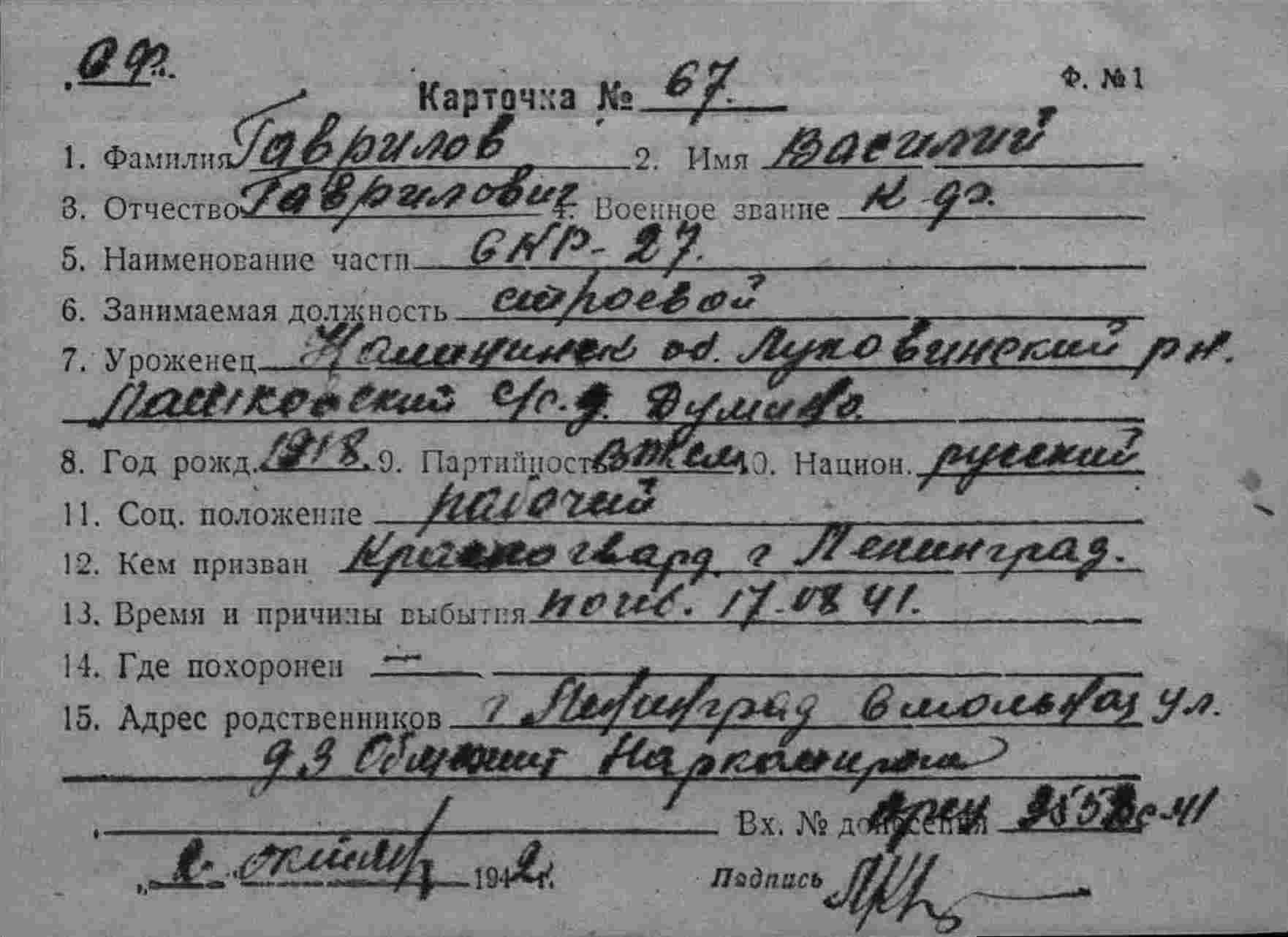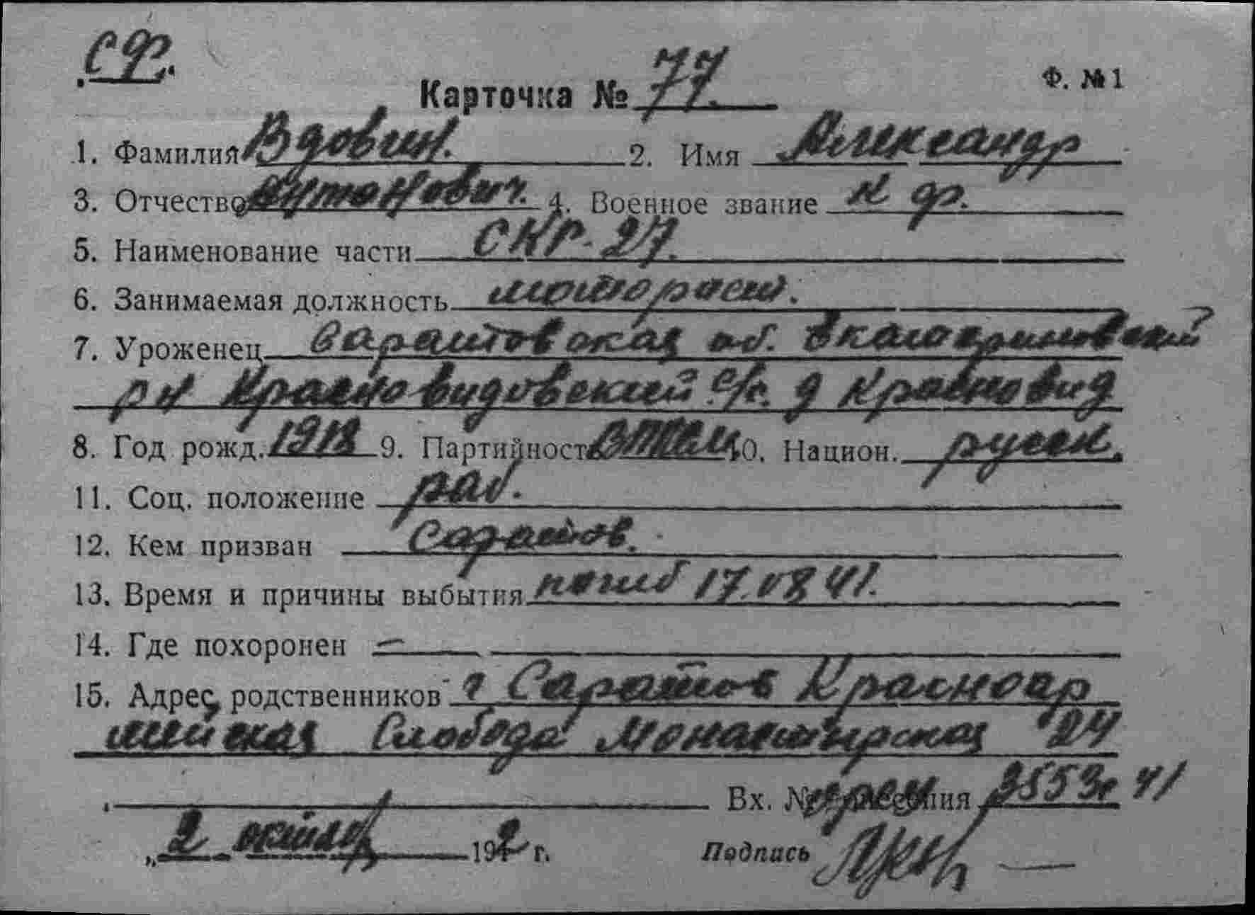 Дата и место призыва Кировский РВК, Чкаловская обл., г. Чкалов, Кировский р-н