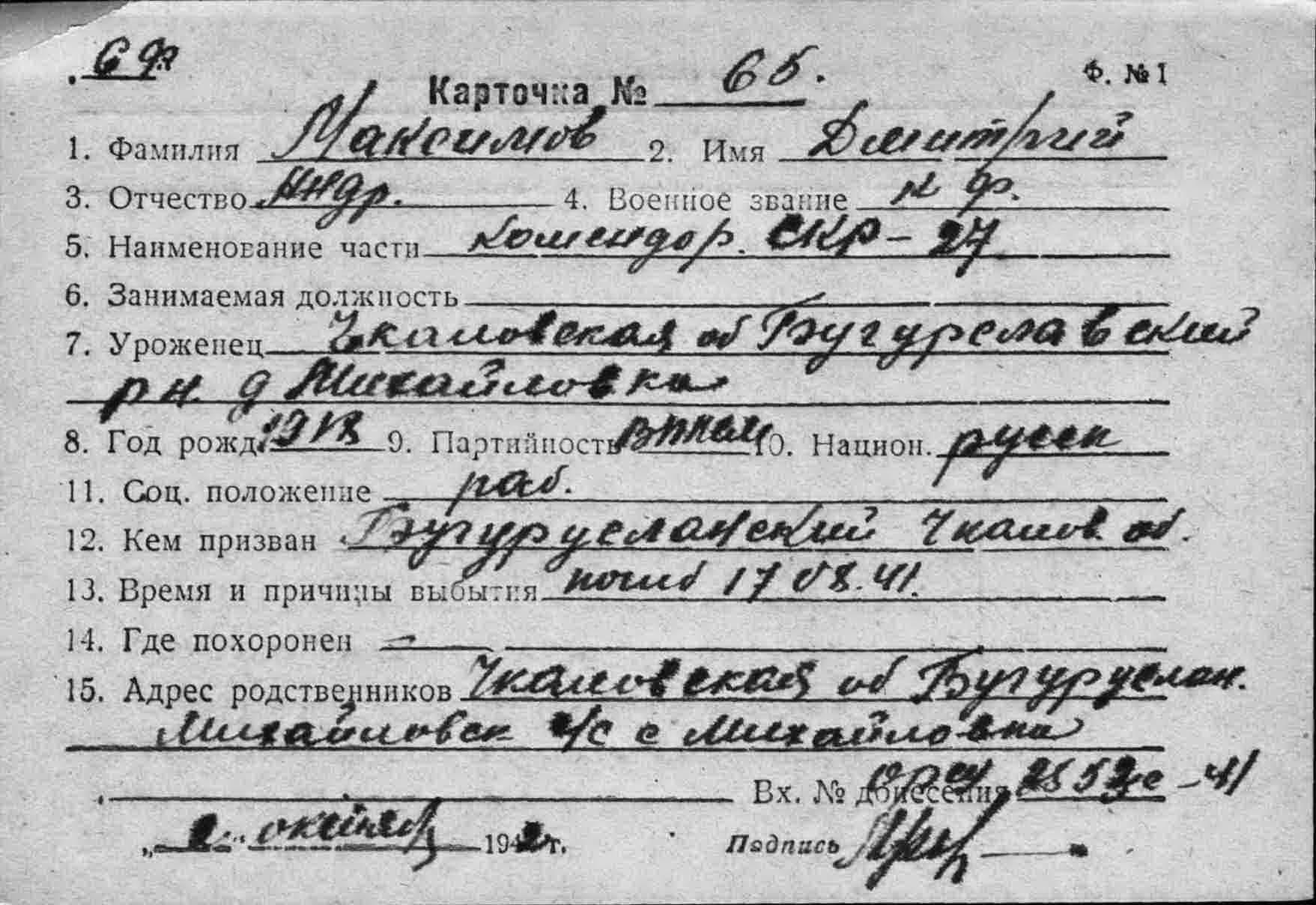 МАКСИМОВ Дмитрий Андреевич, к/ф, комендор